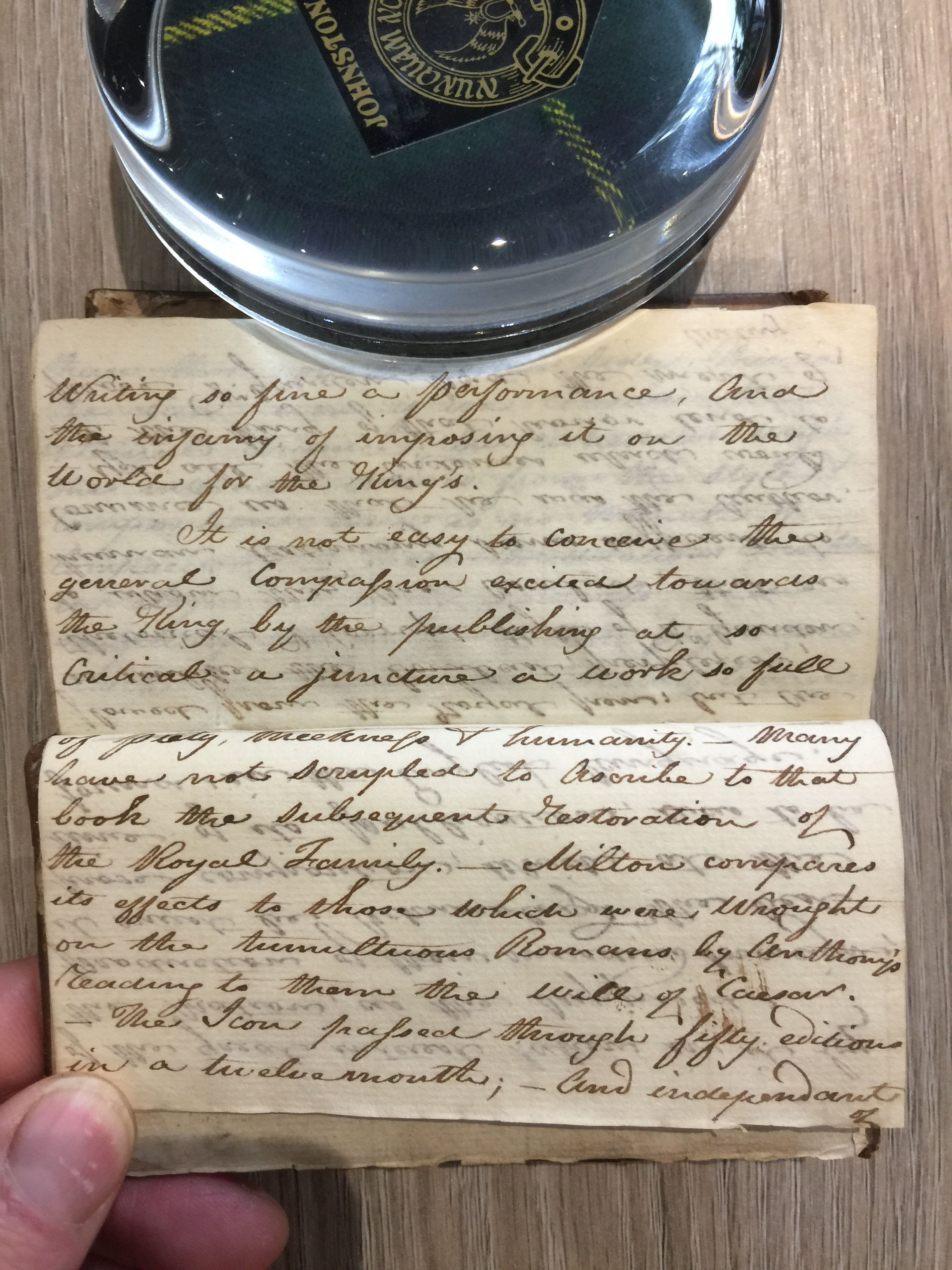There are hand written notes at the back of the book (see photos). These are taken from Hume's "History of England". David Hume was the Scottish Enlightenment philosopher, historian, economist, librarian and essayist, and he discusses the Eikon Basilike.
