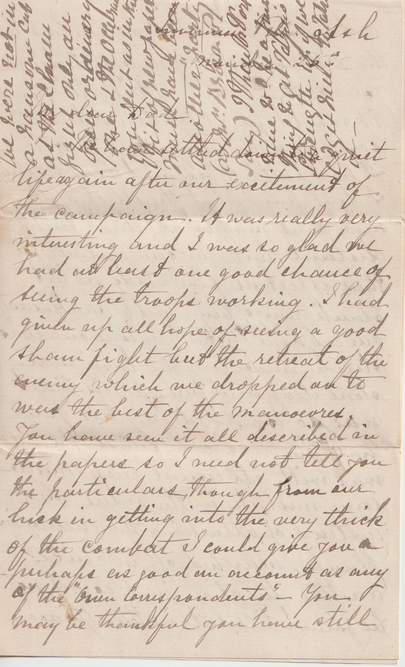 (Crossing on first page) I got my father's letter containing the 27th. colours.