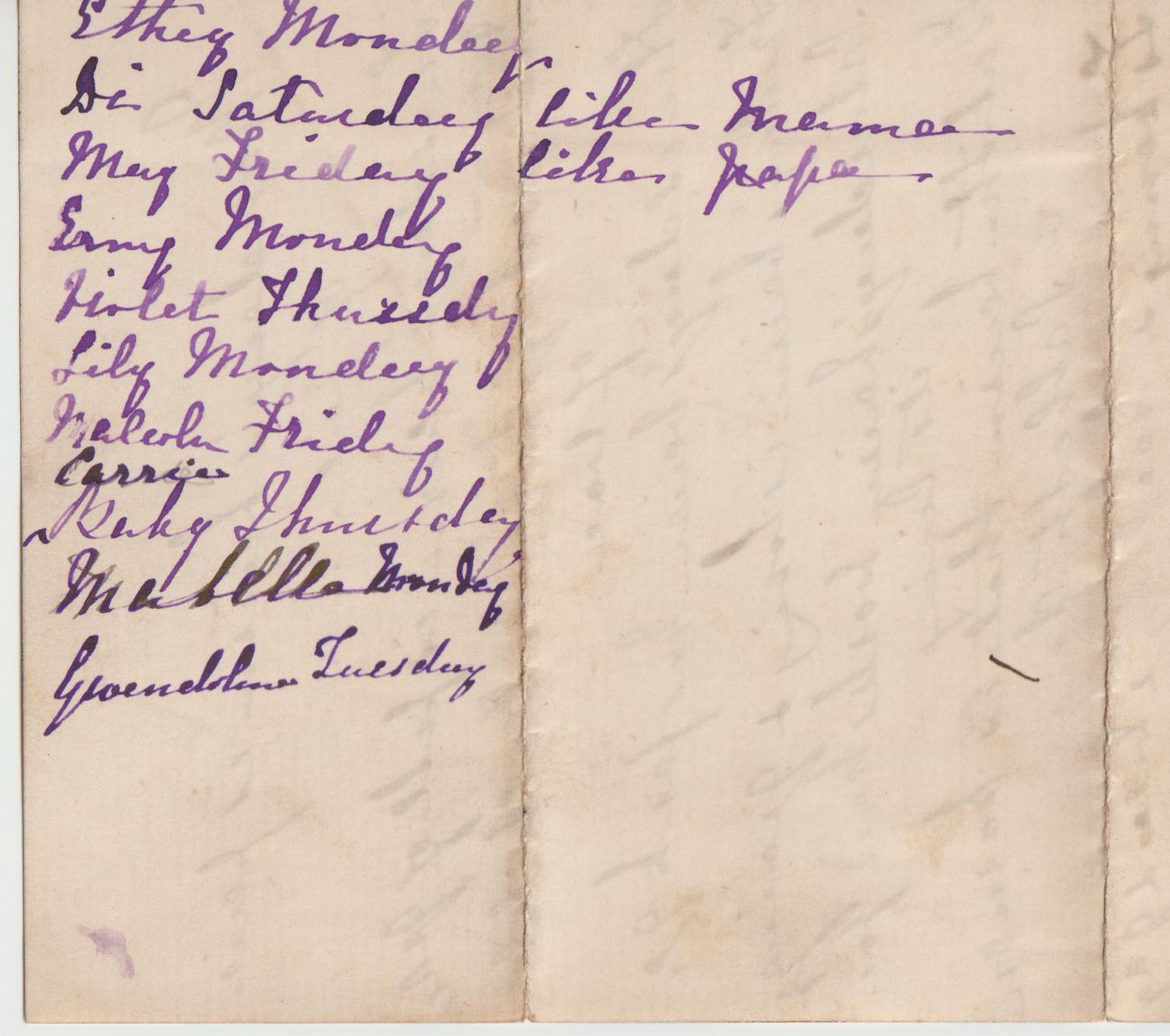 This gives which day of the week that they were born on. On the other side is the rhyme which is supposed to give the person's character!