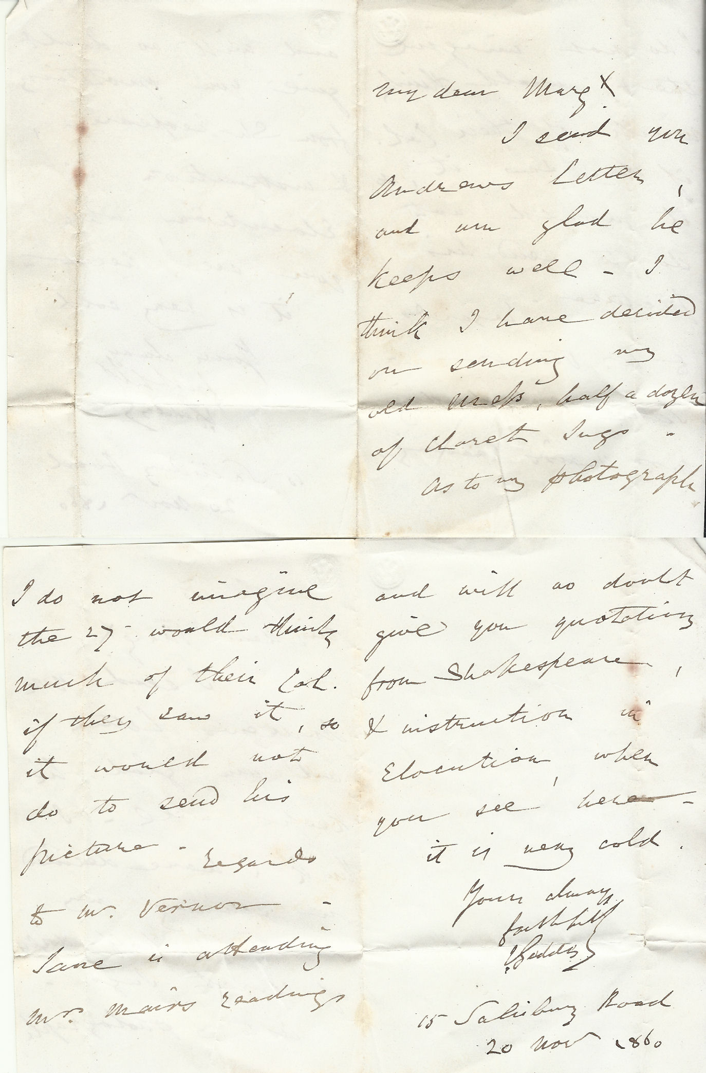 15 Salisbury Road, Newington Satruday 14 April 1860