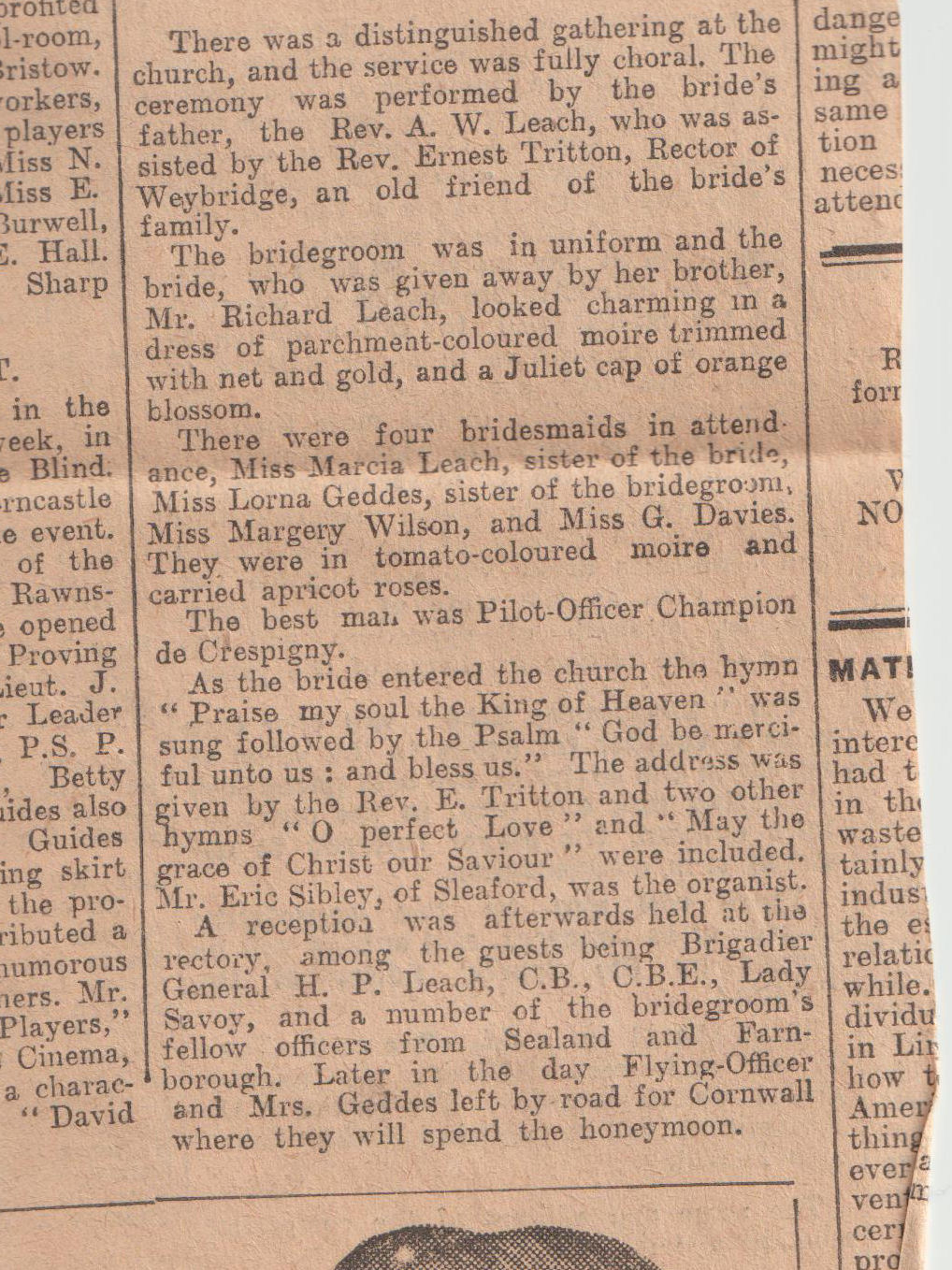 1929 - Marriage of Andrew James Wray Geddes and Anstice Wynter.