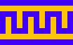 We can even add extra lines at top and bottom to the inverse meander to produce an inverse meander and lines. |