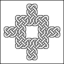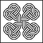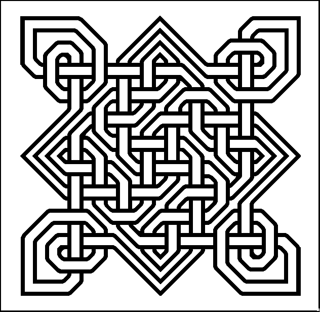 You can print the black and white version, then colour it in with crayons or felt-tip pens, or you can save it, then colour it in on the computer using a program like Paint. The most obvious thing to do is colour a continuous thread the same colour, but there are other ways. Try picking out the edge in a different colour, or high-light one part of it. Click here for some ways of colouring patterns.