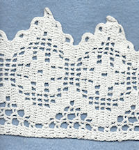 Here are examples of crochet from my lace collection (although, as I am not an expert, some of my identification may be wrong). Click on a picture below to go to a page about the piece, with a large scale image.