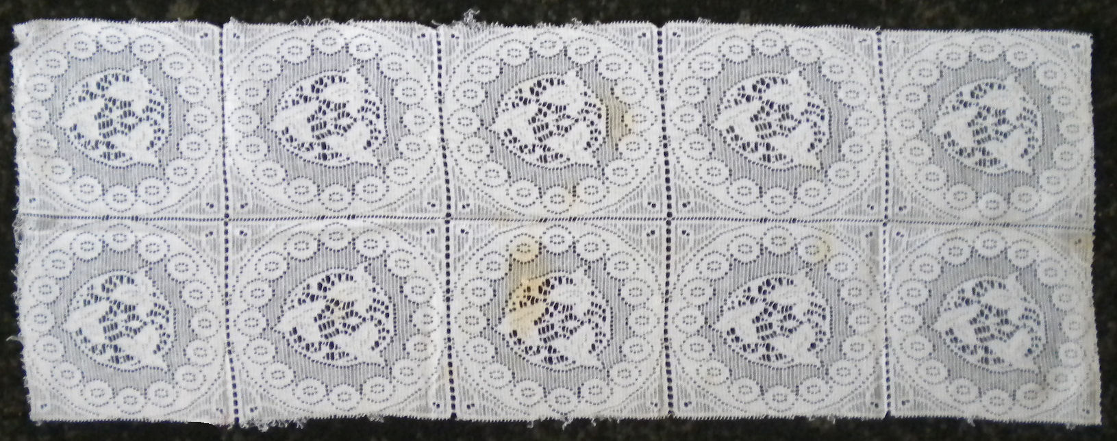 If this piece was cut up it could be made into a number of small mats. The cut edge look a little like picots. The total size shows that it must be machine made. Also all effects are made the same way, just more or less dense. The passive threads are far more sparse than the worker threads.