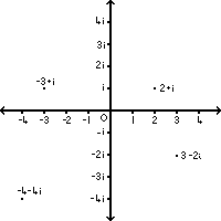 There is a strange property of square roots. We know that 3x3=9. But we also know that (-3)x(-3)=9. So the square root of 9 may be 3 or -3. The other operations, addition, subtraction and so on, give a single answer. But square root can give more than one answer. We write it like this: √9=±3. Now we have to ask, what is the square root of a negative number? What is √-1? Mathematicians decided to invent a new number to cope with this problem. This number is i, where i=√-1. Now we can work out the square root (or indeed any other root) of any number. √-9=±3i √-2=i√2 (where √2 is irrational). Note that -i is a square root of -1 as well. Multiples of i are called imaginary numbers, because they really don't exist in the real world. Real numbers exist, even irrationals. π is the ratio of the circumference of a circle to its diameter, and circles are real enough. But i is something invented (or discovered) to make numbers work. If you mix real numbers and imaginary numbers, you get complex numbers. You do arithmetic with complex numbers, by calculating the imaginary and real parts separately, but remember that ixi=-1. The number line has now become the complex plane. The reals go left to right (like the x axis) and the imaginary numbers go from bottom to top (like the y axis). All complex numbers can be mapped on this plane, like plotting an (x,y) point. Click here for more information on complex numbers. |