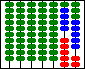 Here is an abacus for you to play with. Click on a bead to push beads into the gap. Click on a bead above the gap to add a number, and below the gap to subtract a number. You can use the abacus leaving the beads green, as if it was a real abacus, or you can chose colours. For example, to add two numbers, chose a colour, such as blue, then enter the number on the abacus by clicking on the beads. Then change the colour, and add in the second number's beads. If you make a mistake or 'carry' then the colours get messed up. If you get muddled, you can click on Restart to start again. You may find it easy to click one bead at a time, rather than move several at once. You can choose your own numbers to enter into the abacus, or you can ask for a sum, addition of subtraction, easy or hard. For the hard sums, it's best to work from right to left, doing the units first, then the tens, and so on.