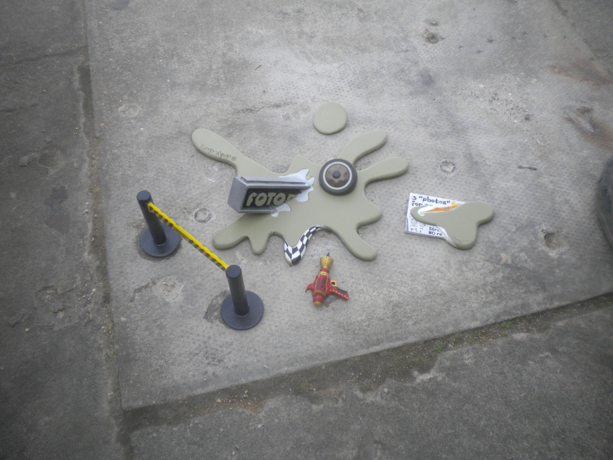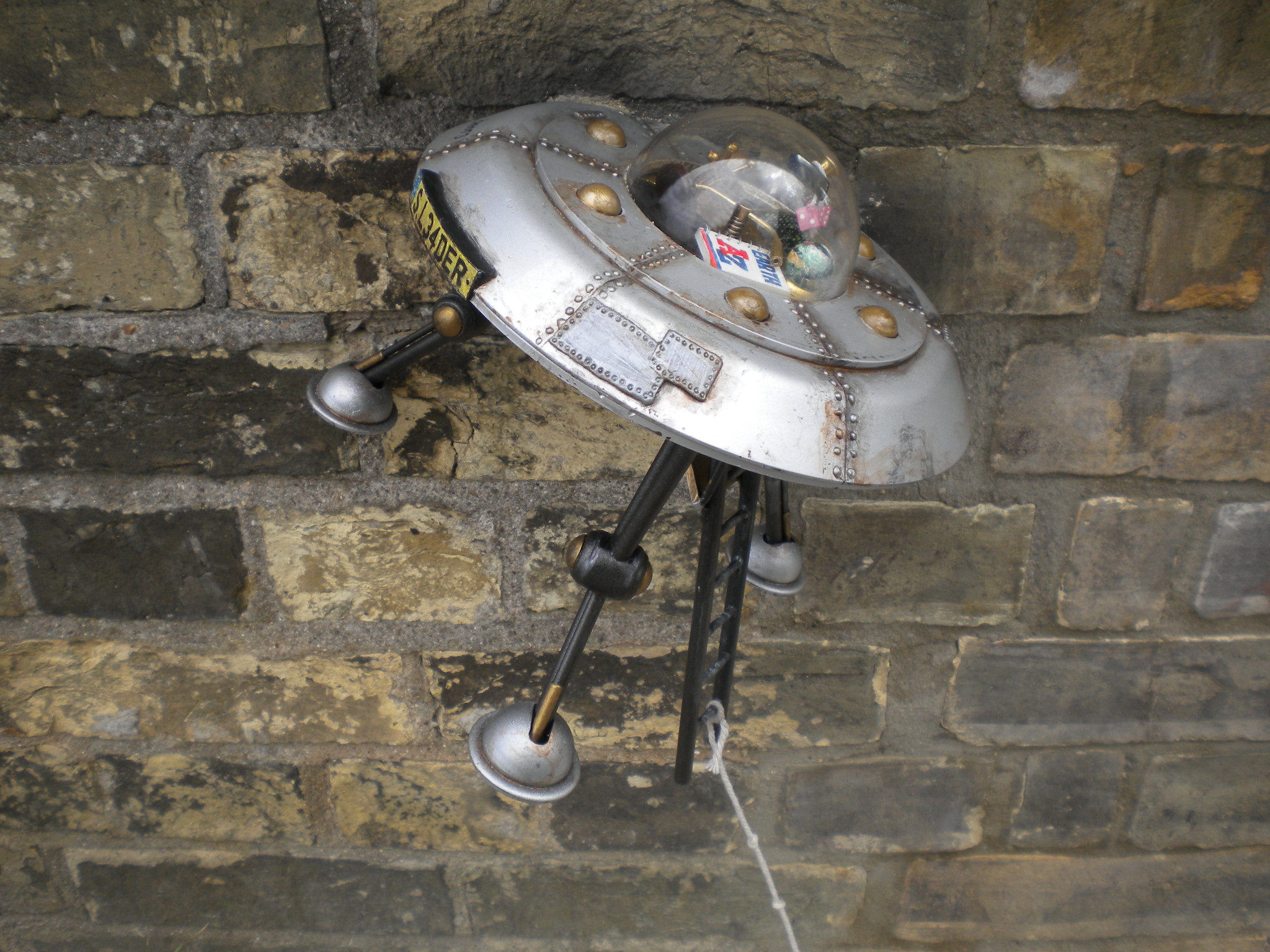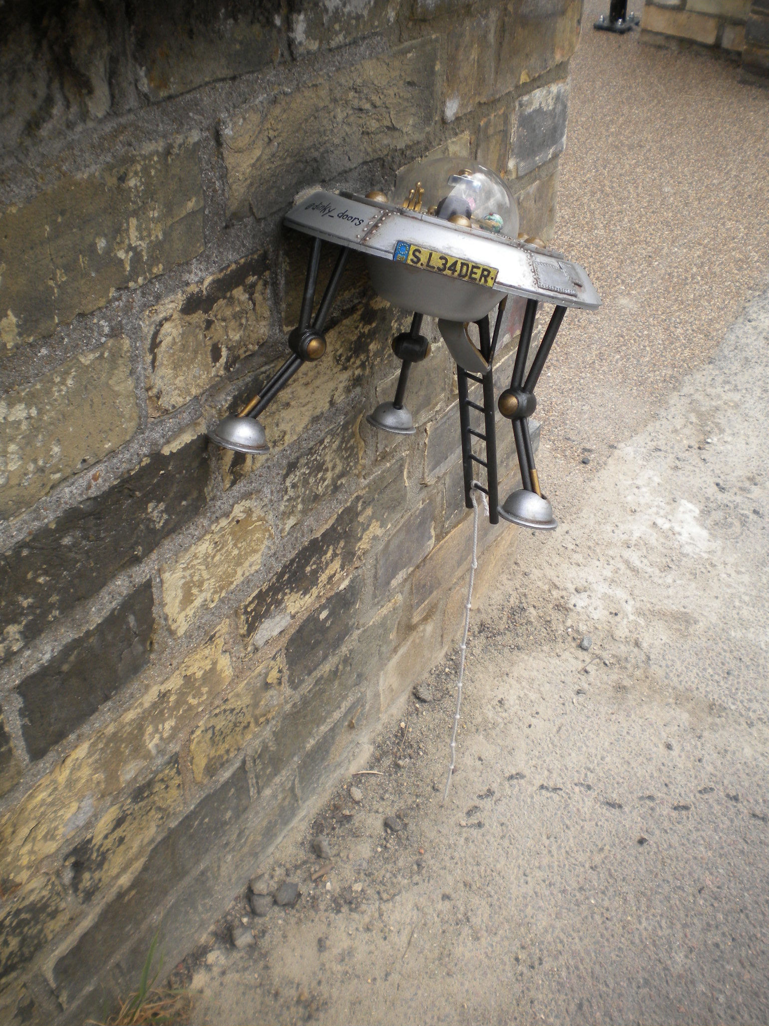 Dinky spaceship crashed into the wall of the Museum of Technology, on Riverside |