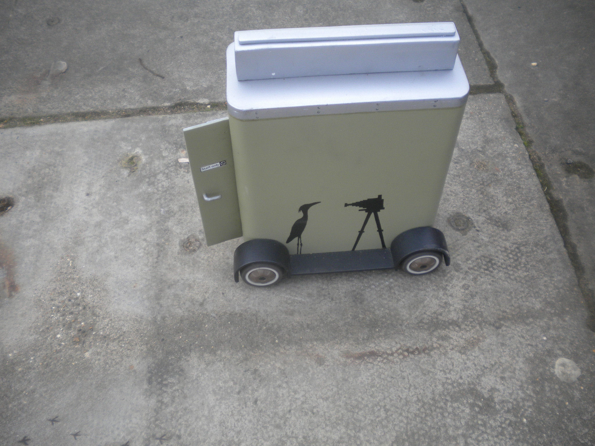 Gwydir St (disappeared) The first one appeared in Gwydir Street, but was removed before anyone noticed it. I got this image from a postcard. The thing in the middle is a tape, as it appeared outside a tape shop. |