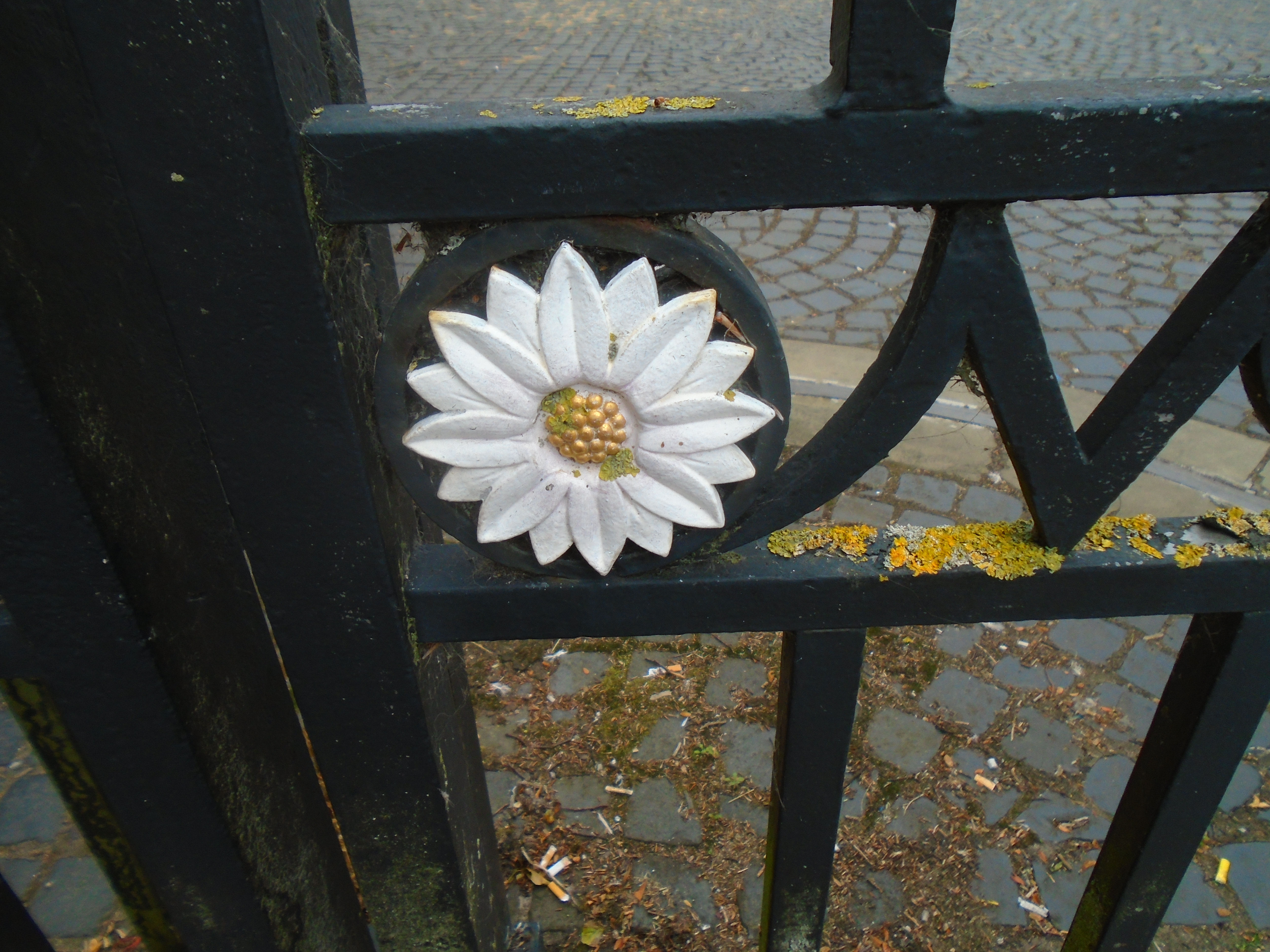Here is another St Johns gate, on the corner of Bridge Street and St Johns Street. It has a date of MCMXL or 1940. The white flowers are marguerites (see above). They feature in the Flower Trail, on the pavement up Bridge Street and Magdalene Street.