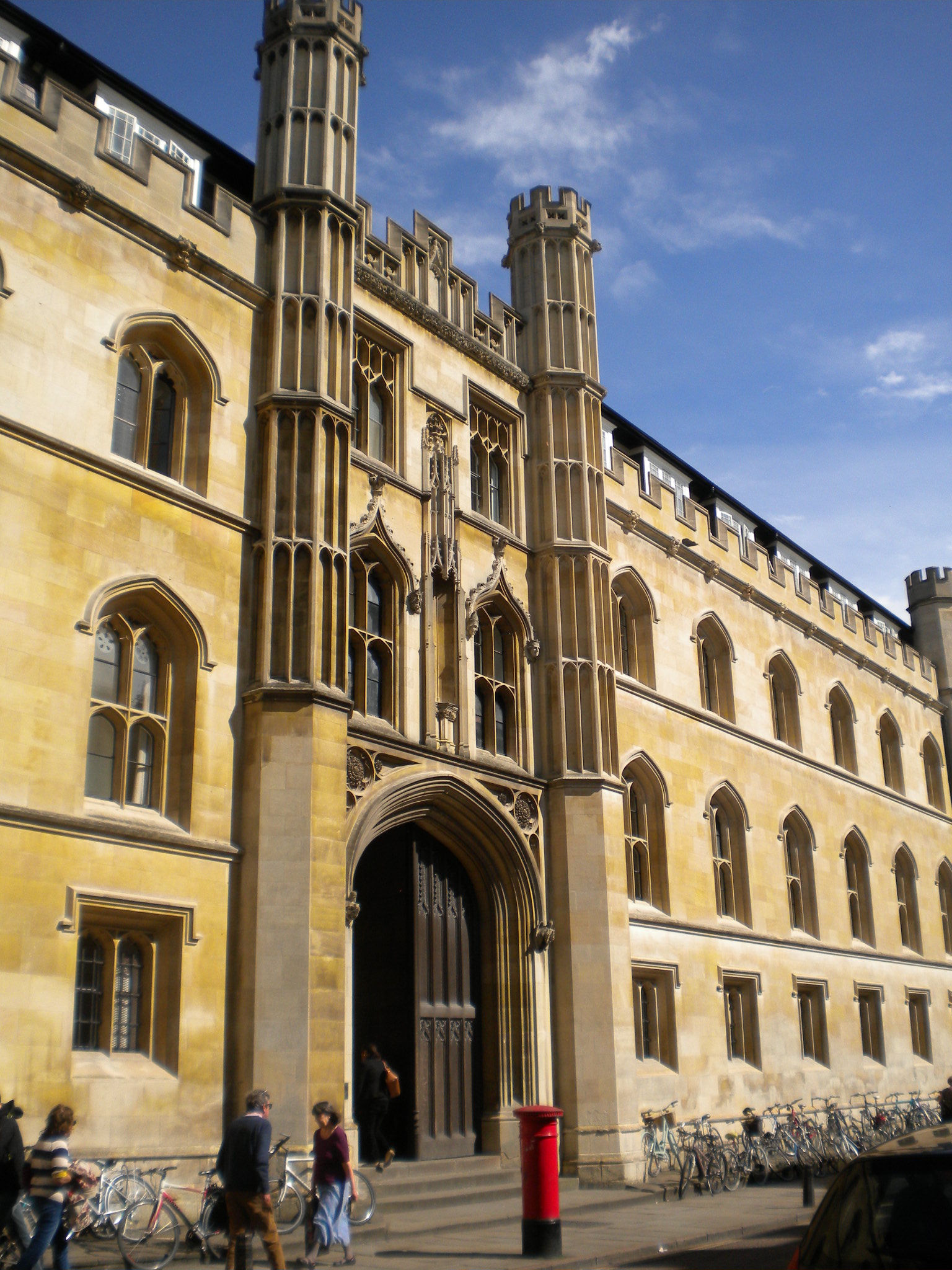 There are two main roads running through the centre of Cambridge and meeting at the Round Church. These are ancient routes. One road runs closer to the river. It starts as St Johns Street, often changes name, and eventually becomes Trumpington Street. It contains some of the most famous colleges (but not all) with some splendid gatehouses.