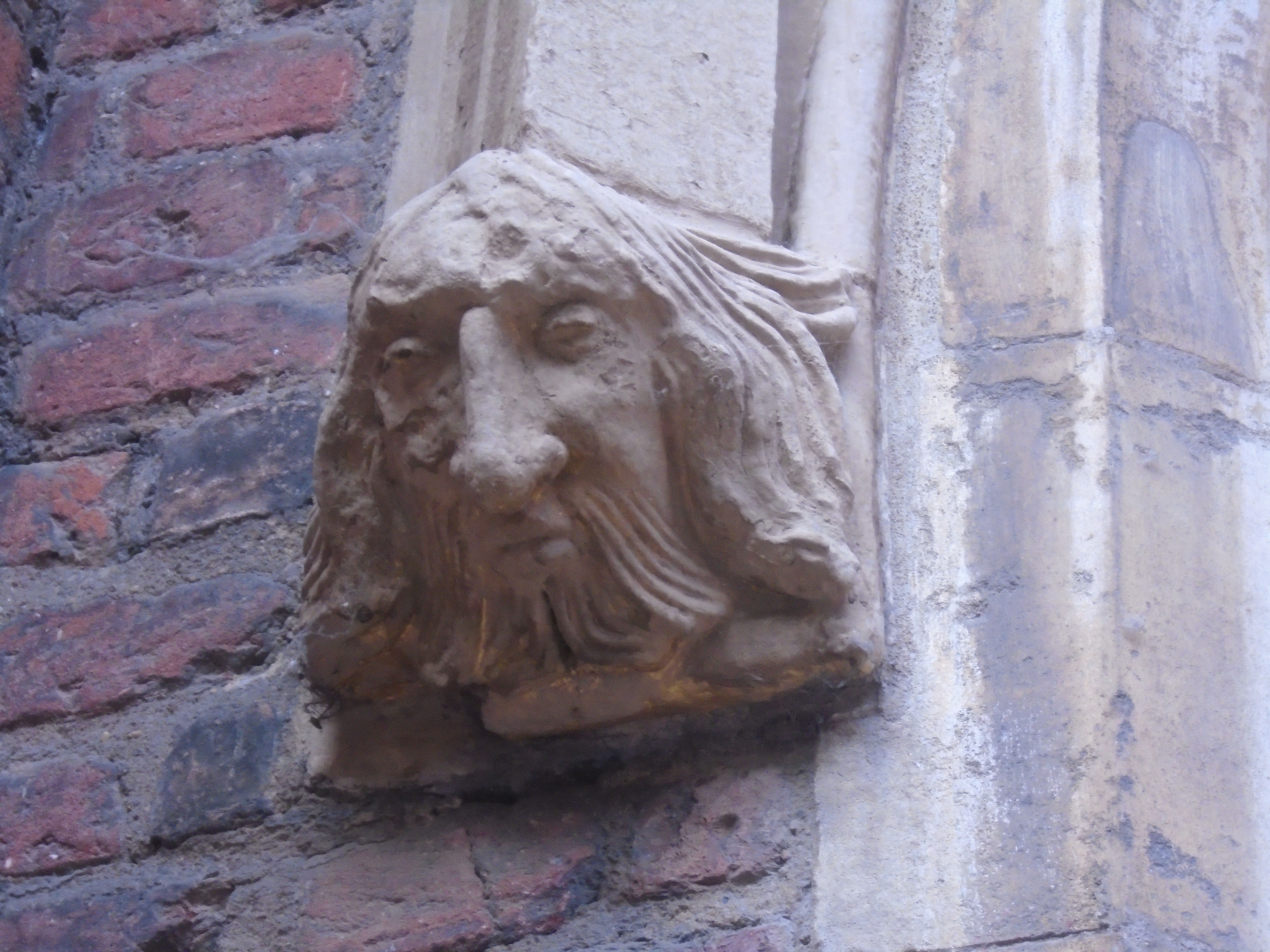 Carry on along King Street. On your right, you will see a new gatehouse, the back gate of Christs. This gatehouse was built in 1993. It has animal carvings by Tim Crawley. |