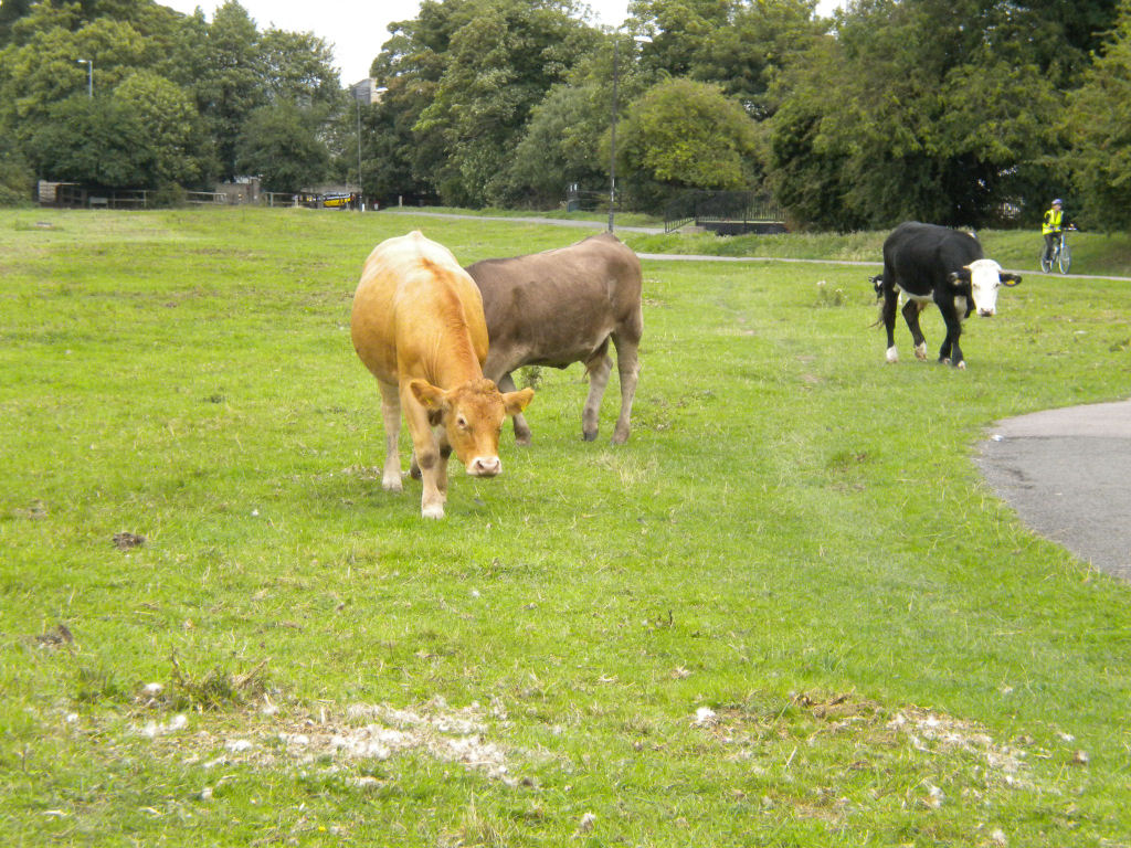 Stourbridge CommonStourbridge Common stretches along the southern bank of the River Cam, to the east of Cambridge. You can enter it from Riverside, Garlic Row, or the Green Dragon footbridge. There are also footbridges over the railway line to Ditton Meadows, the next common along (not covered in this website). Stourbridge Common usually has grazing animals, often cows. It feels like countryside, with rough grass, some trees, thistles, and cowpats! So it's probably best to keep to the paths. There is an attractive walk along the river, and another walk to Fen Ditton. From Stourbridge Common, you can also cross the Green Dragon bridge, turn right and walk until you rejoin the river, walking along the other river bank with views of Stourbridge Common across the river. There is a children's playground near Riverside. There is a stream called Coldham's Brook which runs through Stourbridge Common, but it was never called the Stour (which might have explained the name of the Common). Another explanation is Steer Bridge, i.e. a bridge for oxen. Stourbridge Common is part of the first river walk, which describes it more fully. |