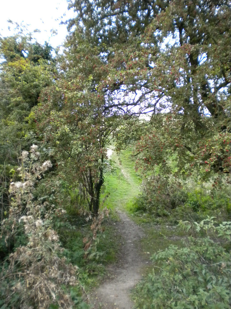Carry on walking round the edge of the common. There are wild flowers in some areas and blackberries in others.