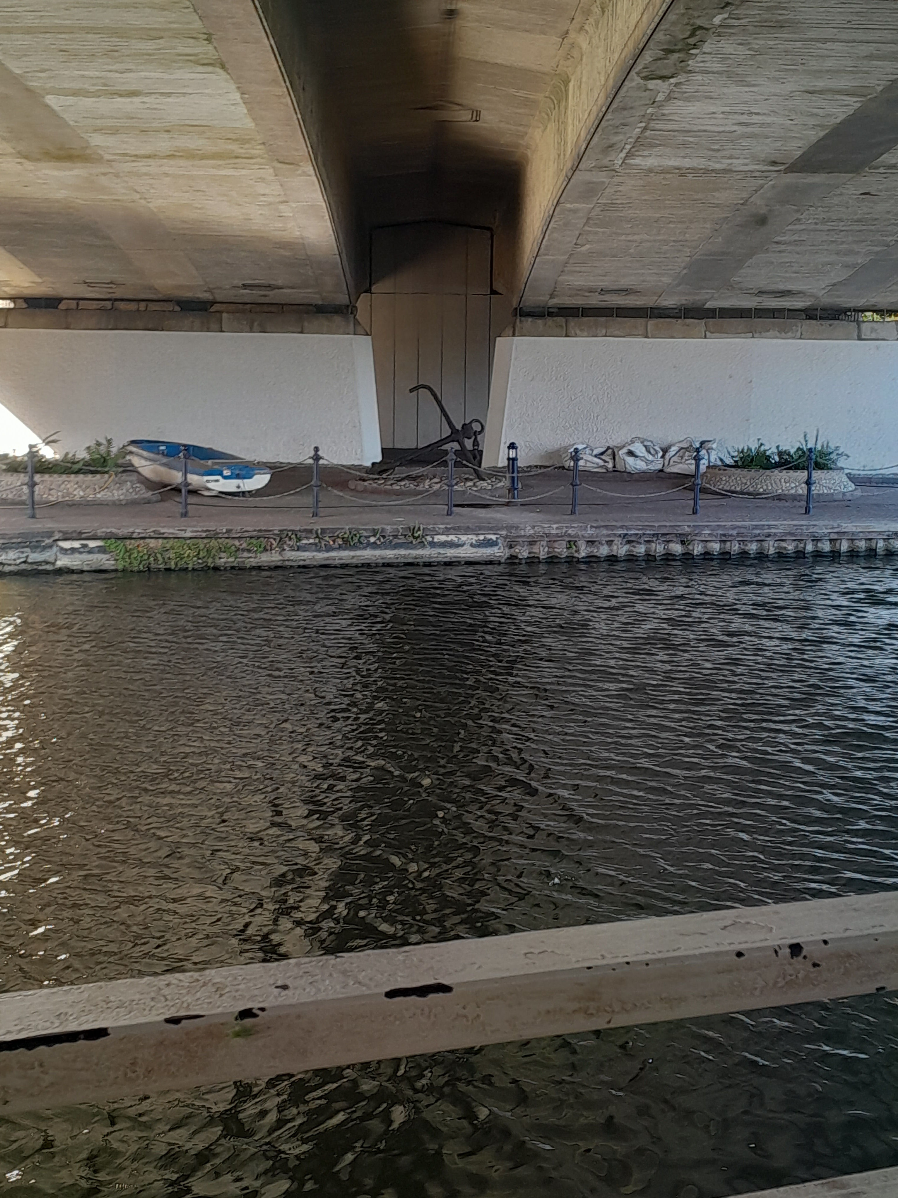 This is the view of Elizabeth Way bridge if you're approaching from Riverside. Under the bridge is an anchor.