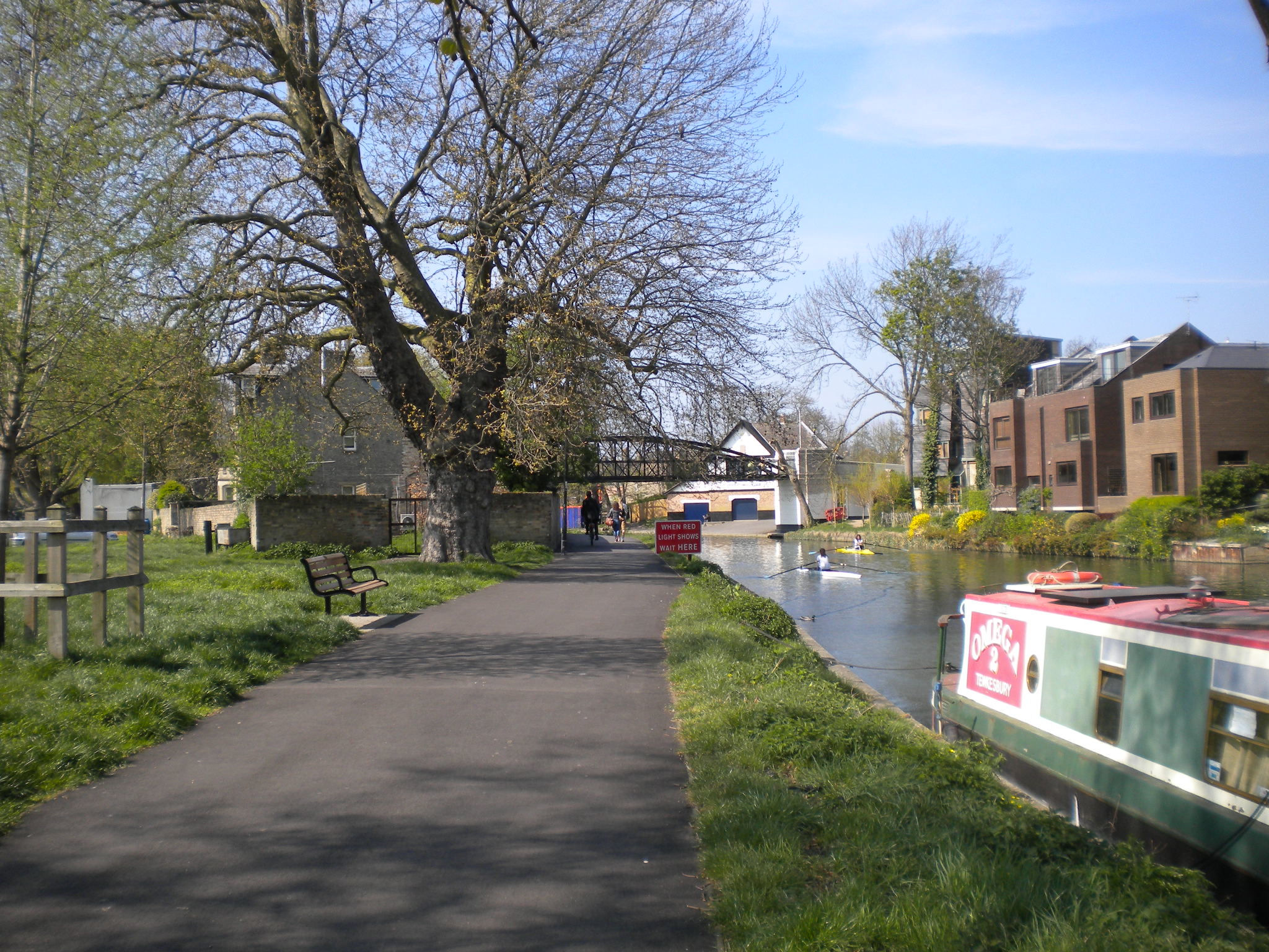 Now turn around, and walk westward along the river. You are now walking through Midsummer Common.