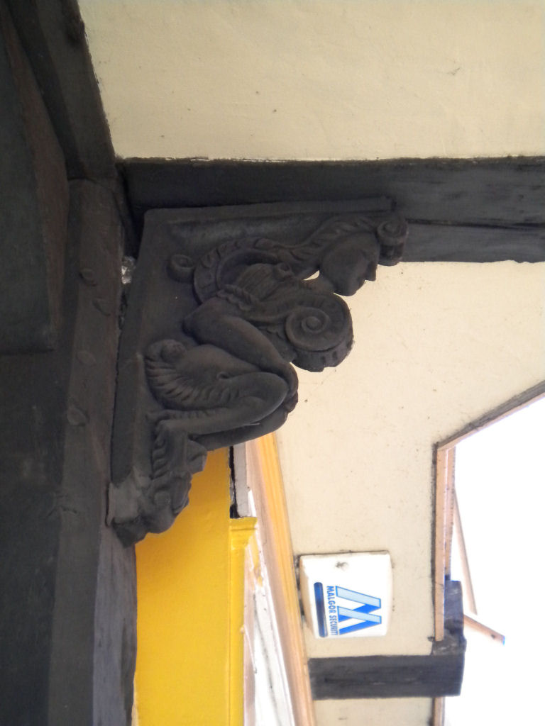 25 Magdalene Street is 16th Century. It has wood carvings supporting the beams across the building. There is a local story that these used to advertise a brothel! However, it is more likely that these grotesques were a protection against witchcraft.