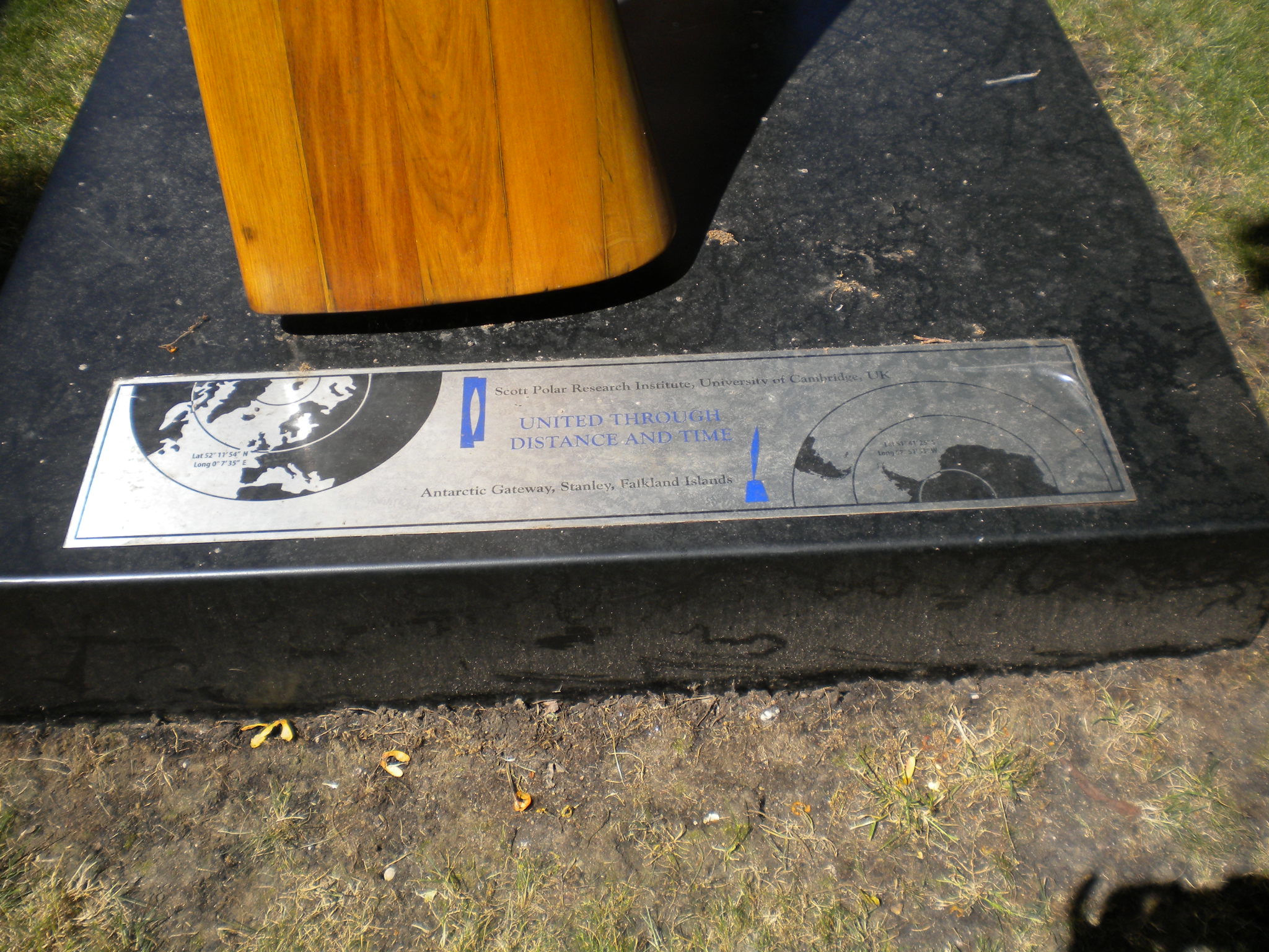 The stone in the centre marks where you should stand according to which month it is. Your shadow then falls onto the stones round the edge to give the time. The photos on the right, above, show it in use during a sunny Christmas Day, which produced good, long shadows! By the way, the stone area at the top of the third picture is not part of the sundial. It is the base of a bandstand.