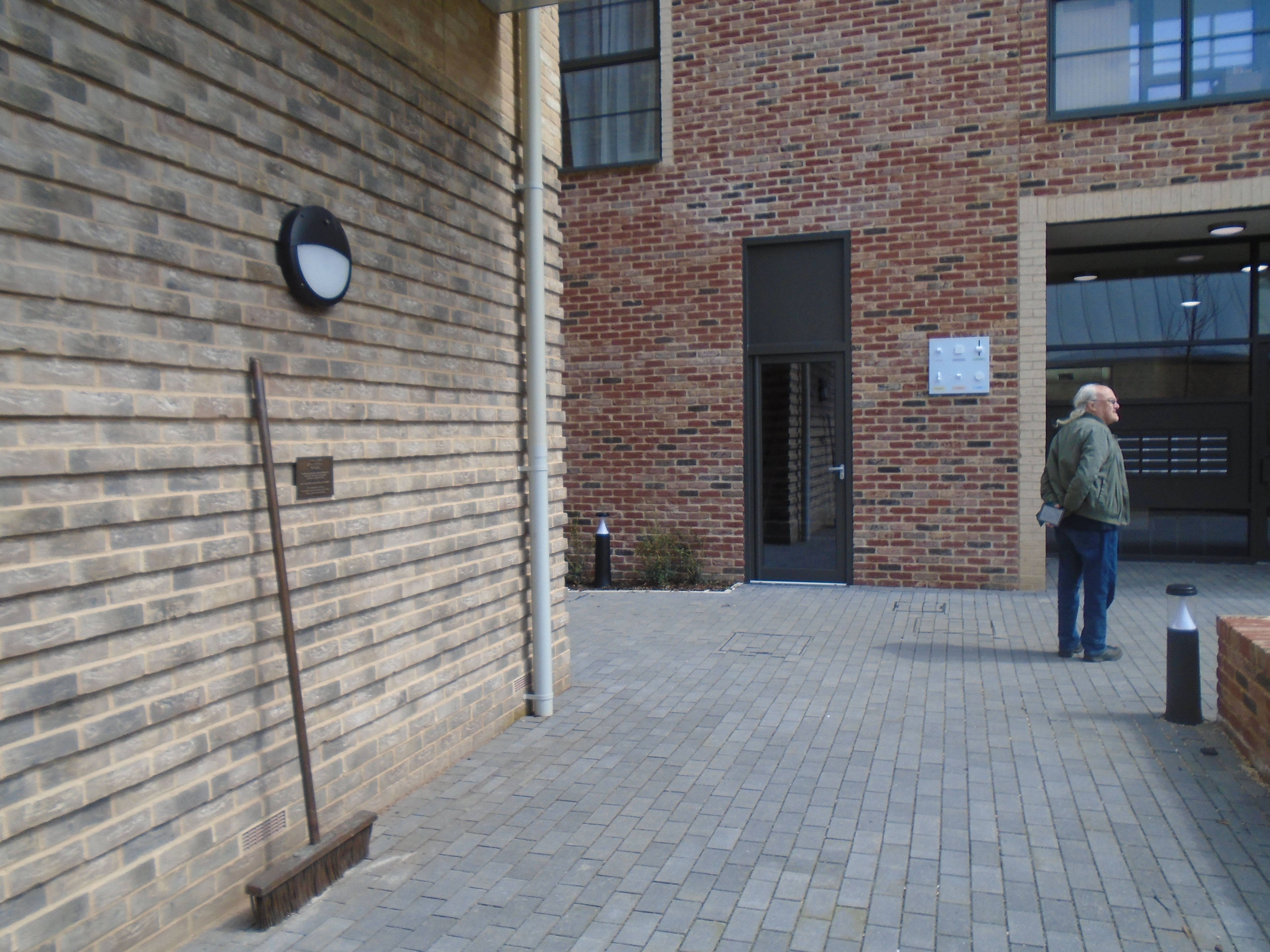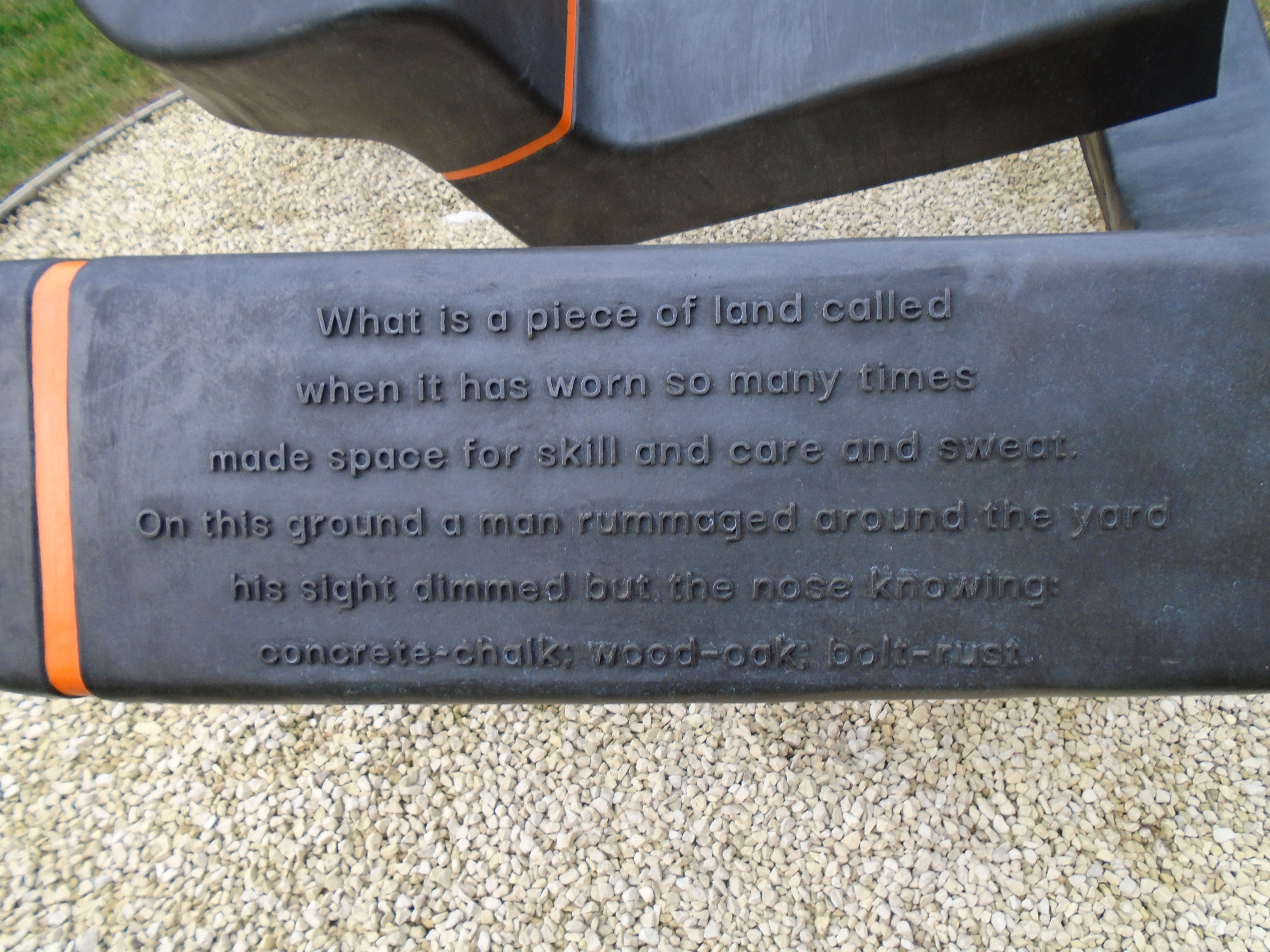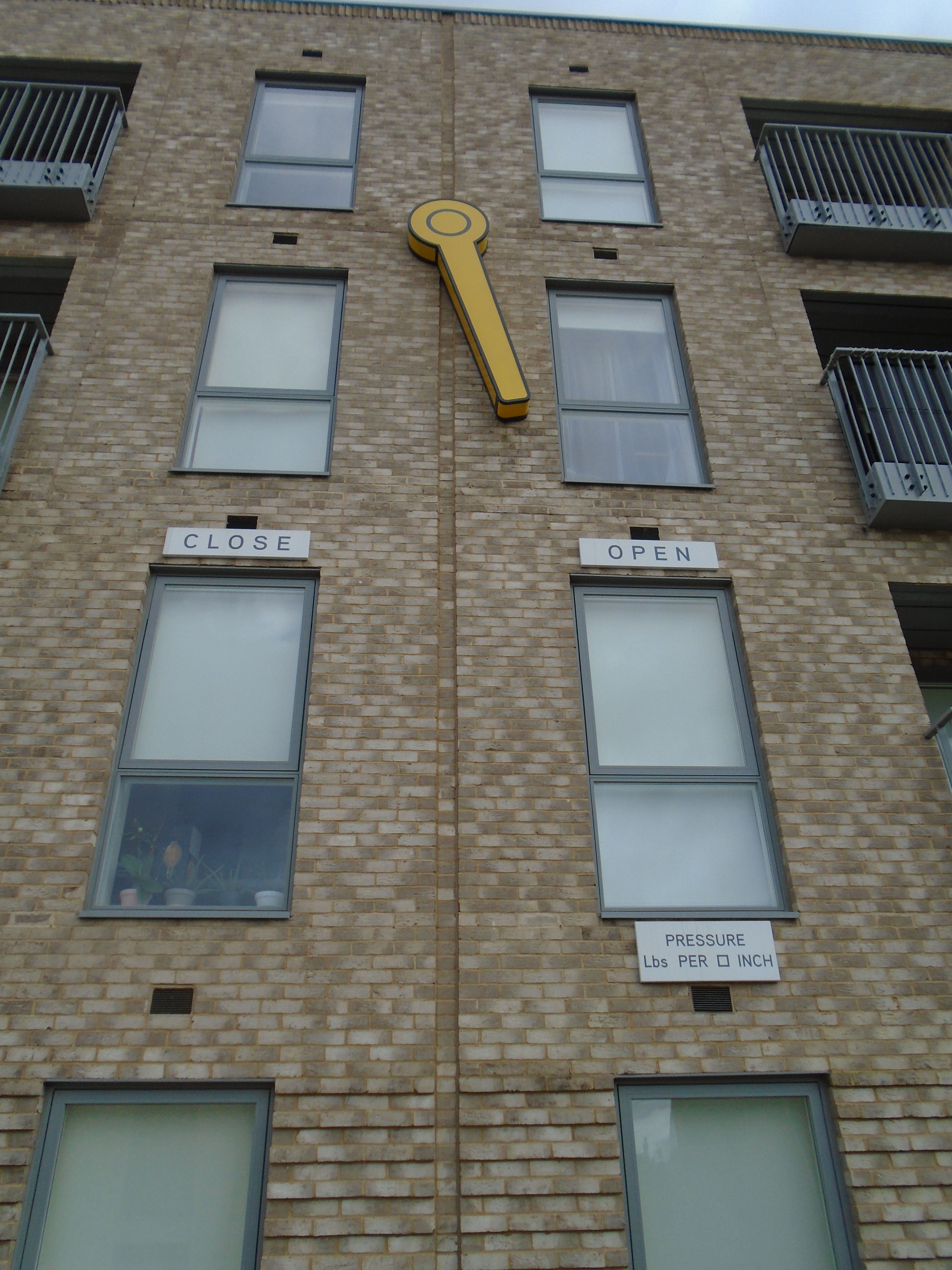 Closer to West Road, there is a bank of grey stone, with insets. If you go round the back of it, it's a cycle park! One of the insets says "Christine Kettaneh, mute melodies, 2013, [A:L:L]". Her website about the artwork is here, where she says "I wonder what would result if I asked key cutters to save all the metal filings - that metallic dust that gets lost when the keys are cut. What if I collected them? What if I restored the wholeness back to the keys?"