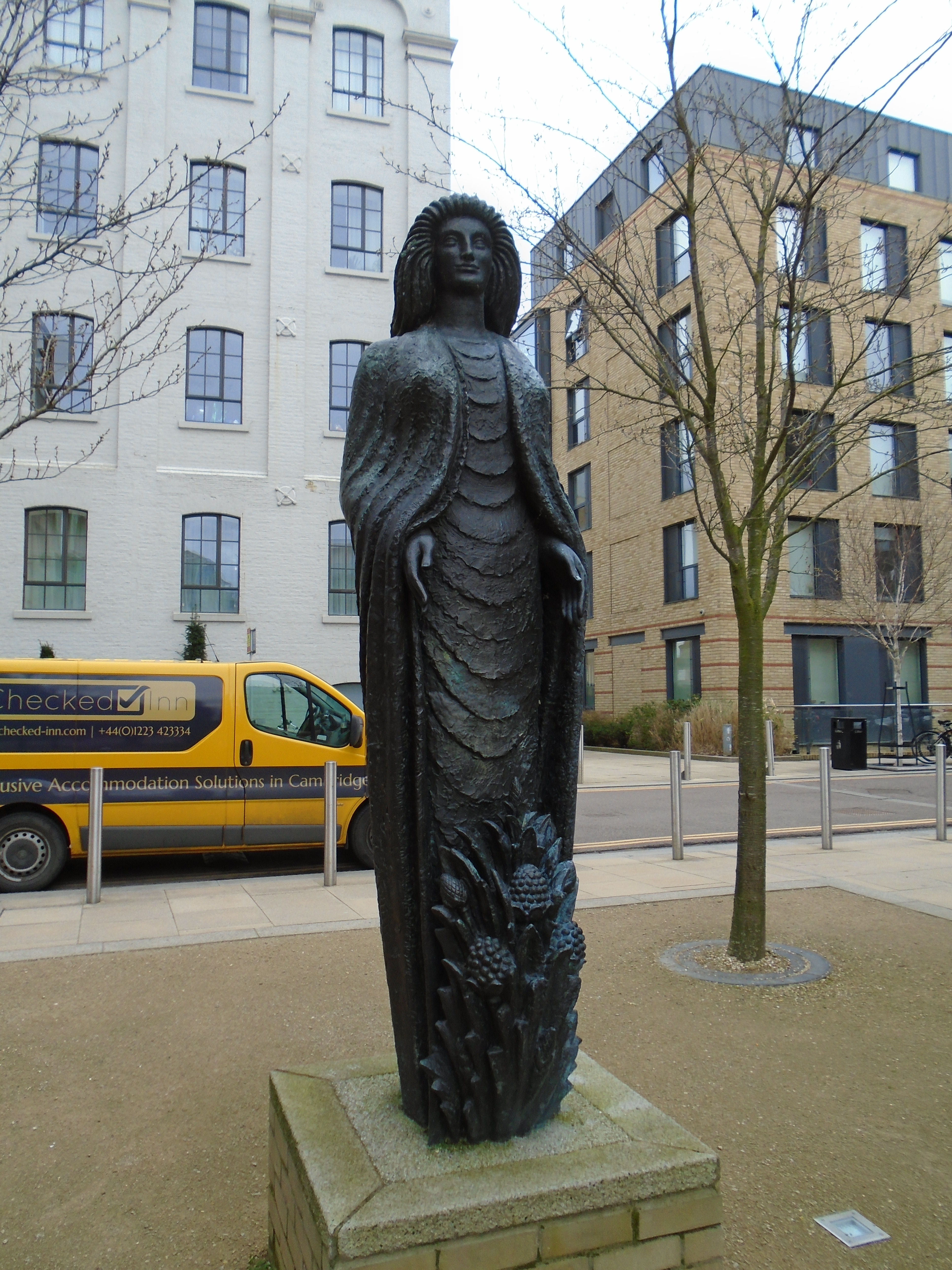 To find this, cross Silver Street bridge to the non Anchor side. Behind the pavilion, there is a steep flight of steps down to the river, where there are punts for hire. At the bottom of the steps is this sculpture.