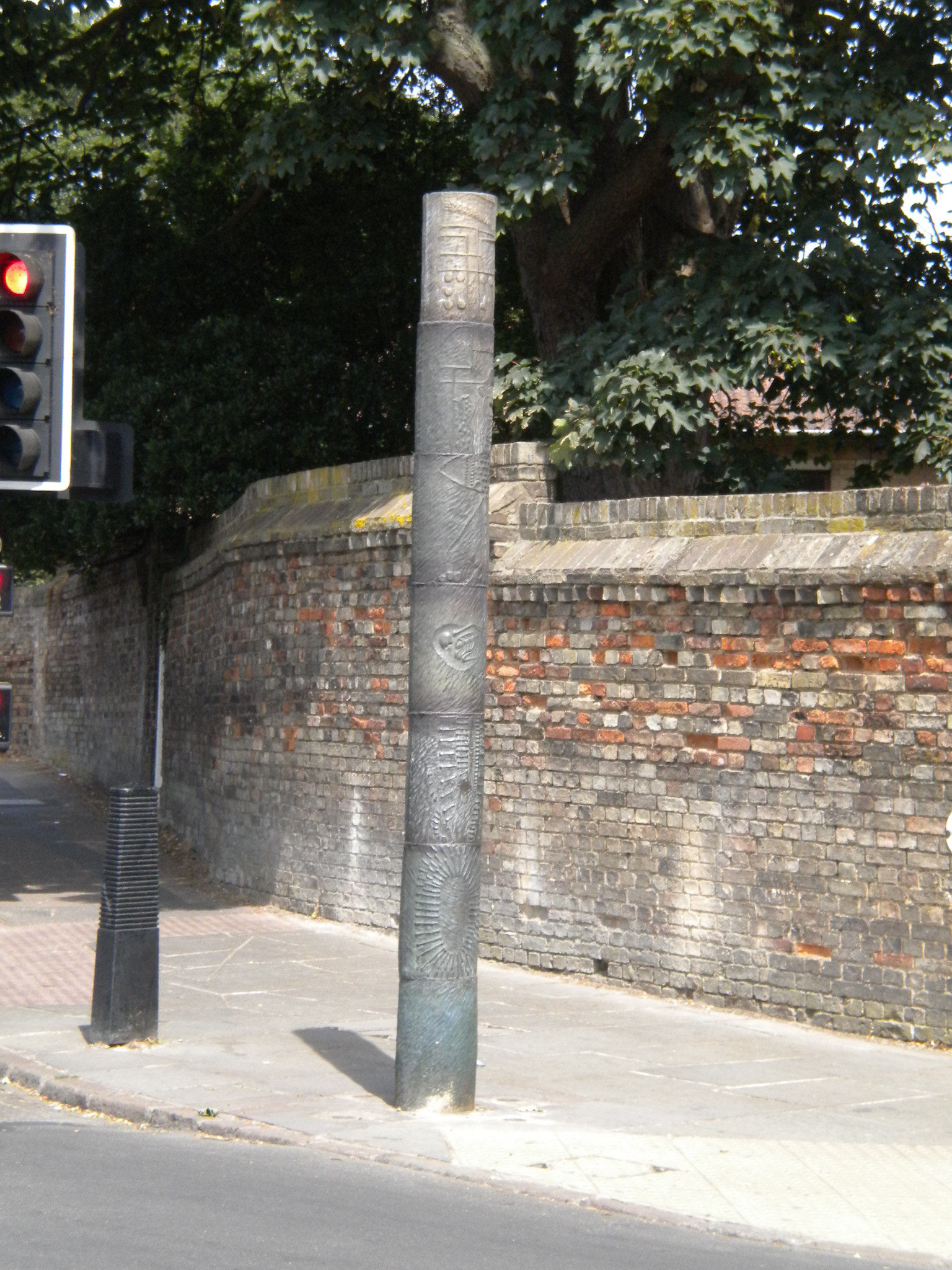 This rather strange bronze column, on the corner of Magdalene Street and Chesterton Lane, is by by artist Michael Fairfax, 2001. Click on the photo for more of it, although it is hard to photograph! "Magdalene" is pronouned "Maudlin", by the way!