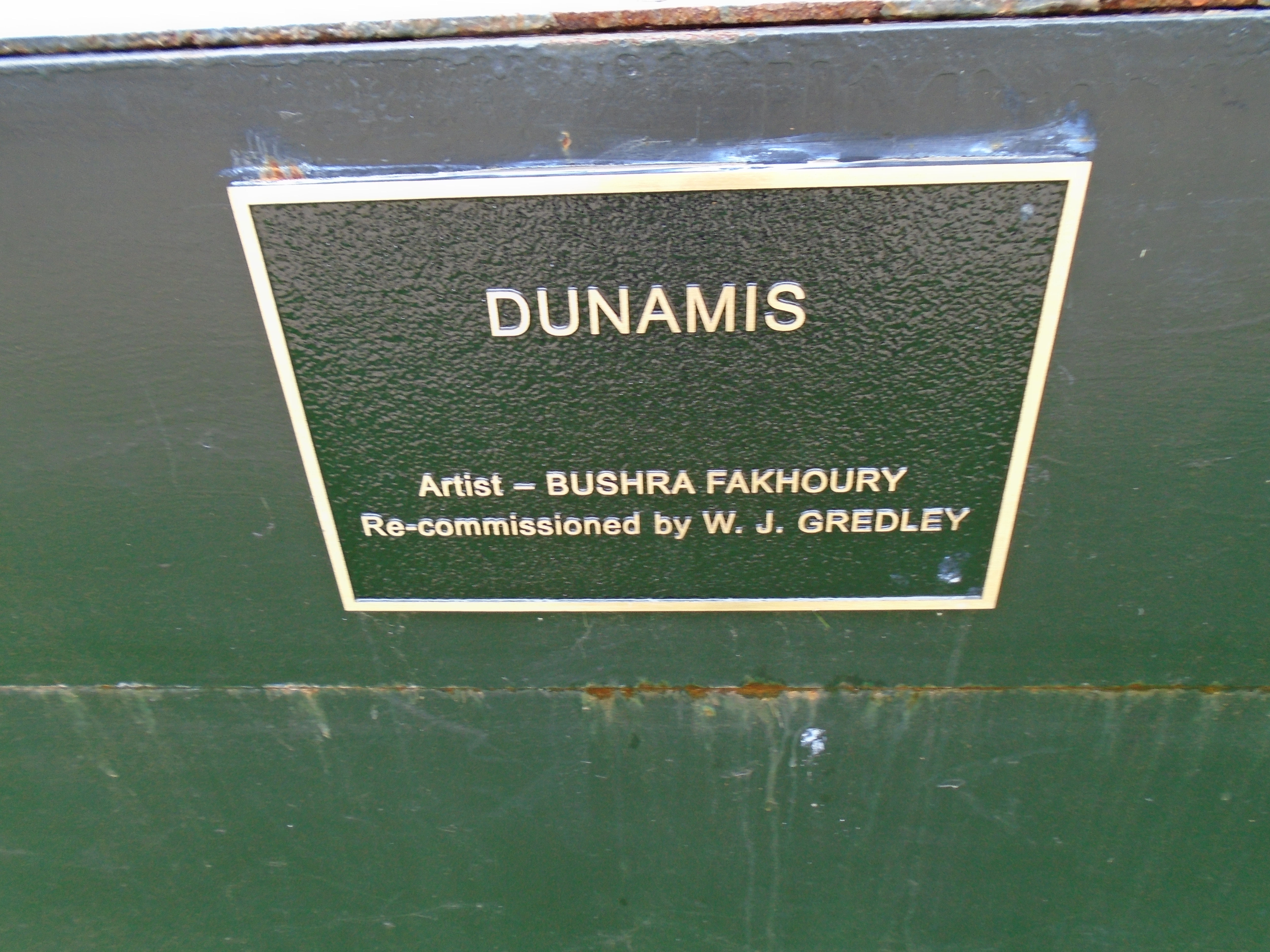 Just beyond the previous artwork is this piece also on your left. It is Two Elements uniting to form a Contract, by Colin Rose, dated 2005, and it looks better without the tree getting in the way.