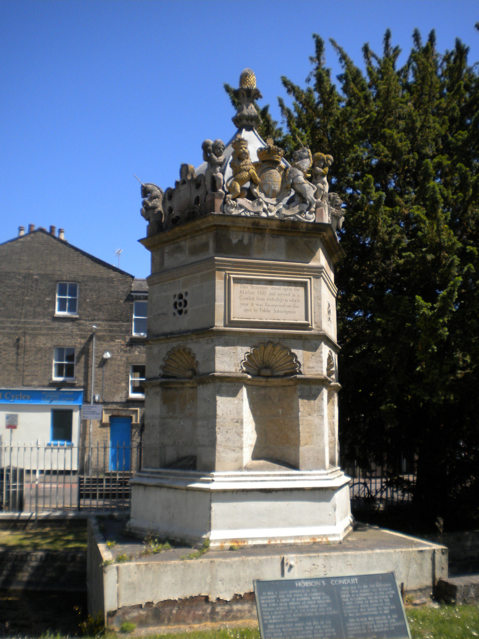 Hobson's conduit, St Andrews StHobson conduit in Trumpingto St is well known. However, it also runs, underground, in St Andrews St. Part of its route is marked by these charming plaques. They were cast by Taylors Foundry in Haverhill. There is more about their location, plus other information about Thomas Hobson here. |