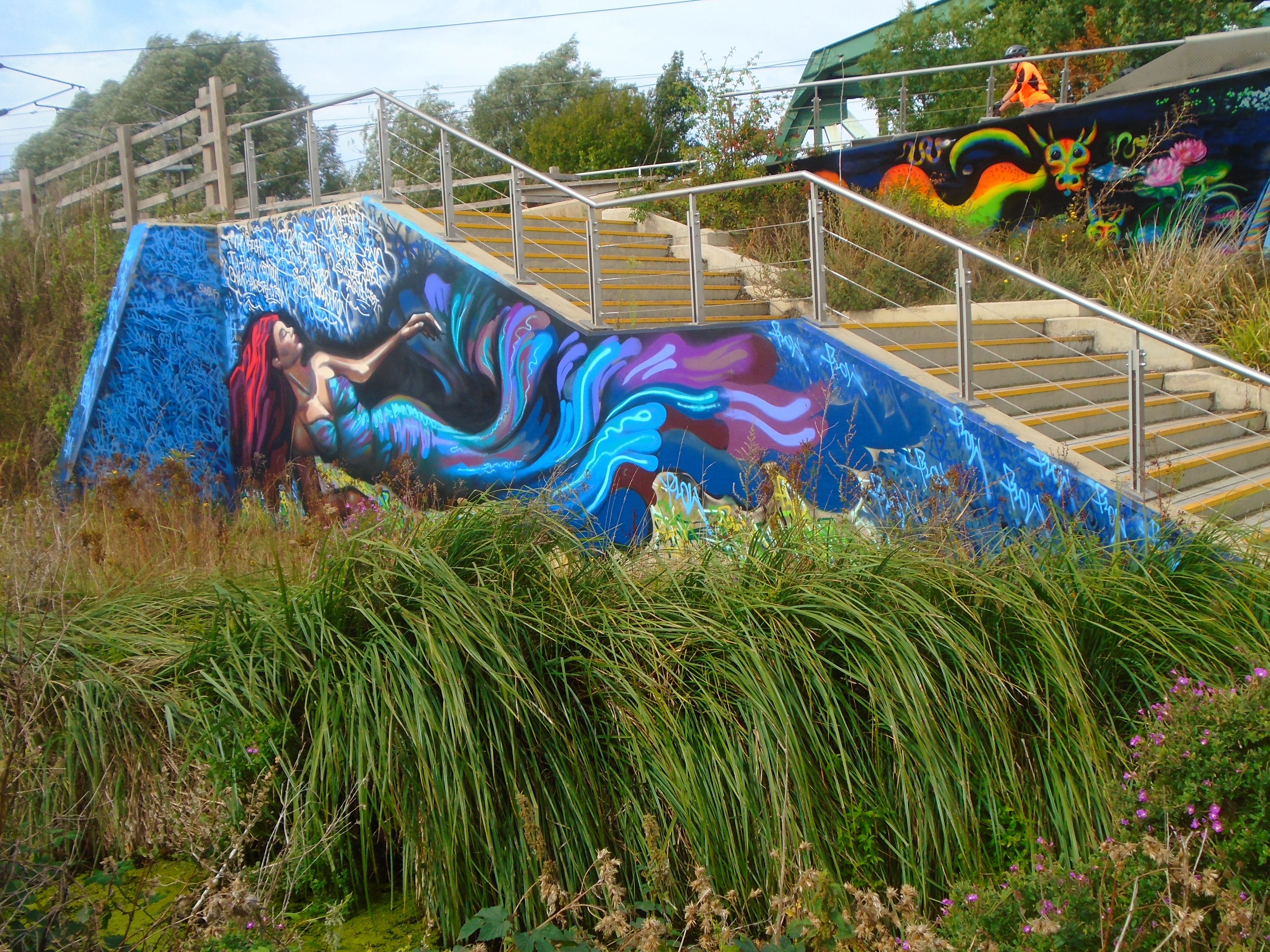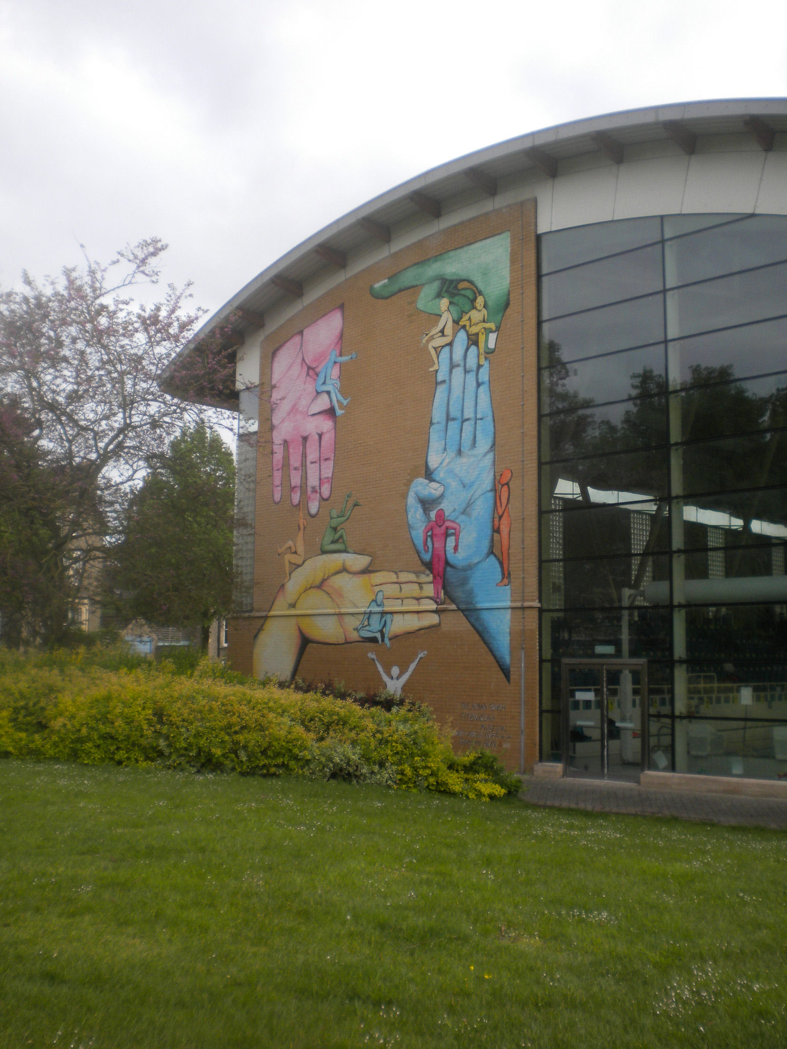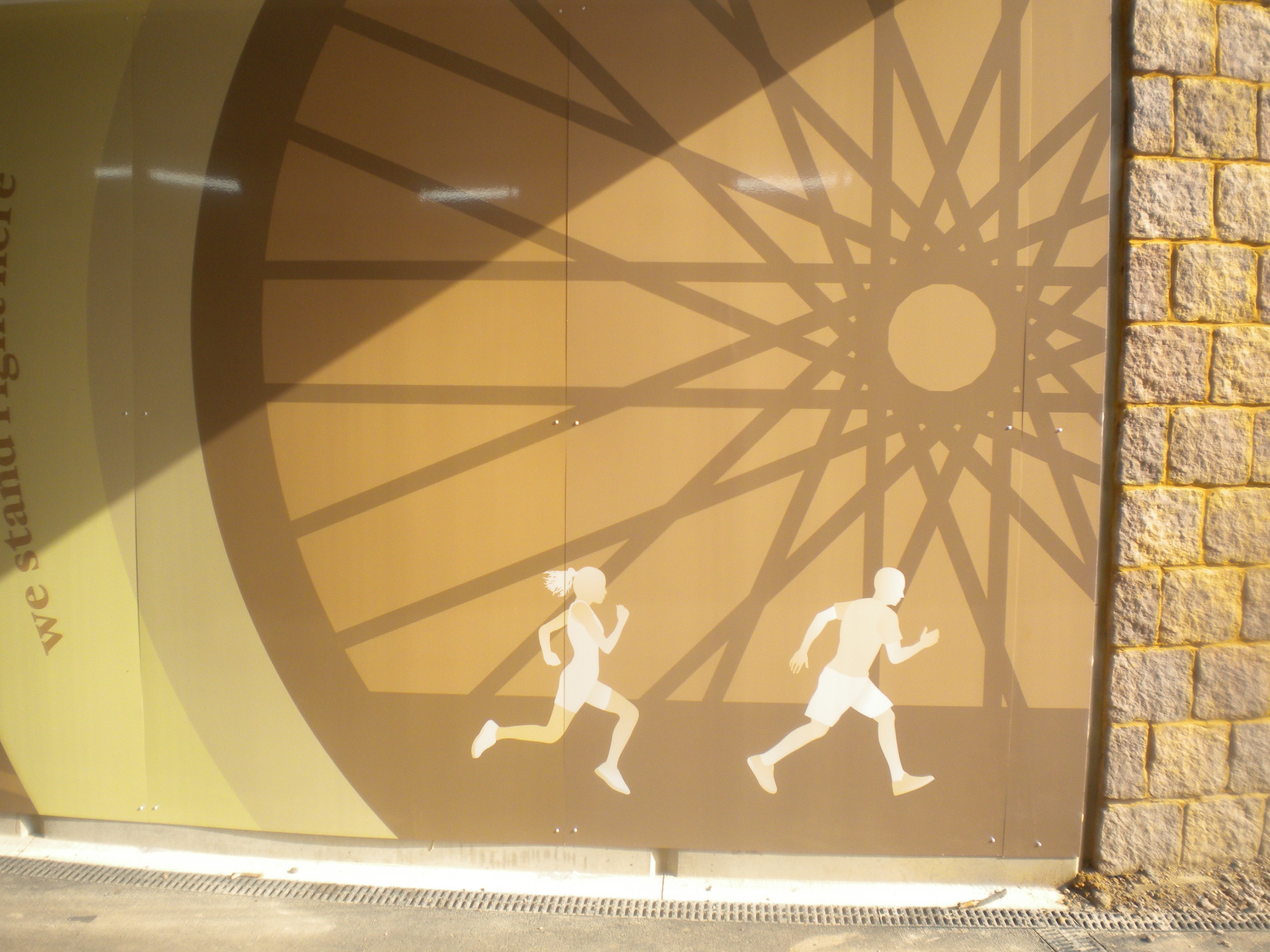 Human Touch mural, Swimming poolI'm not sure whether this mural is temporary or permanent. It says:)> "The Human Touch" Fitzwilliam Museum. Thanks to Nelly Duff Gallery, Giacomo Run 2021 |