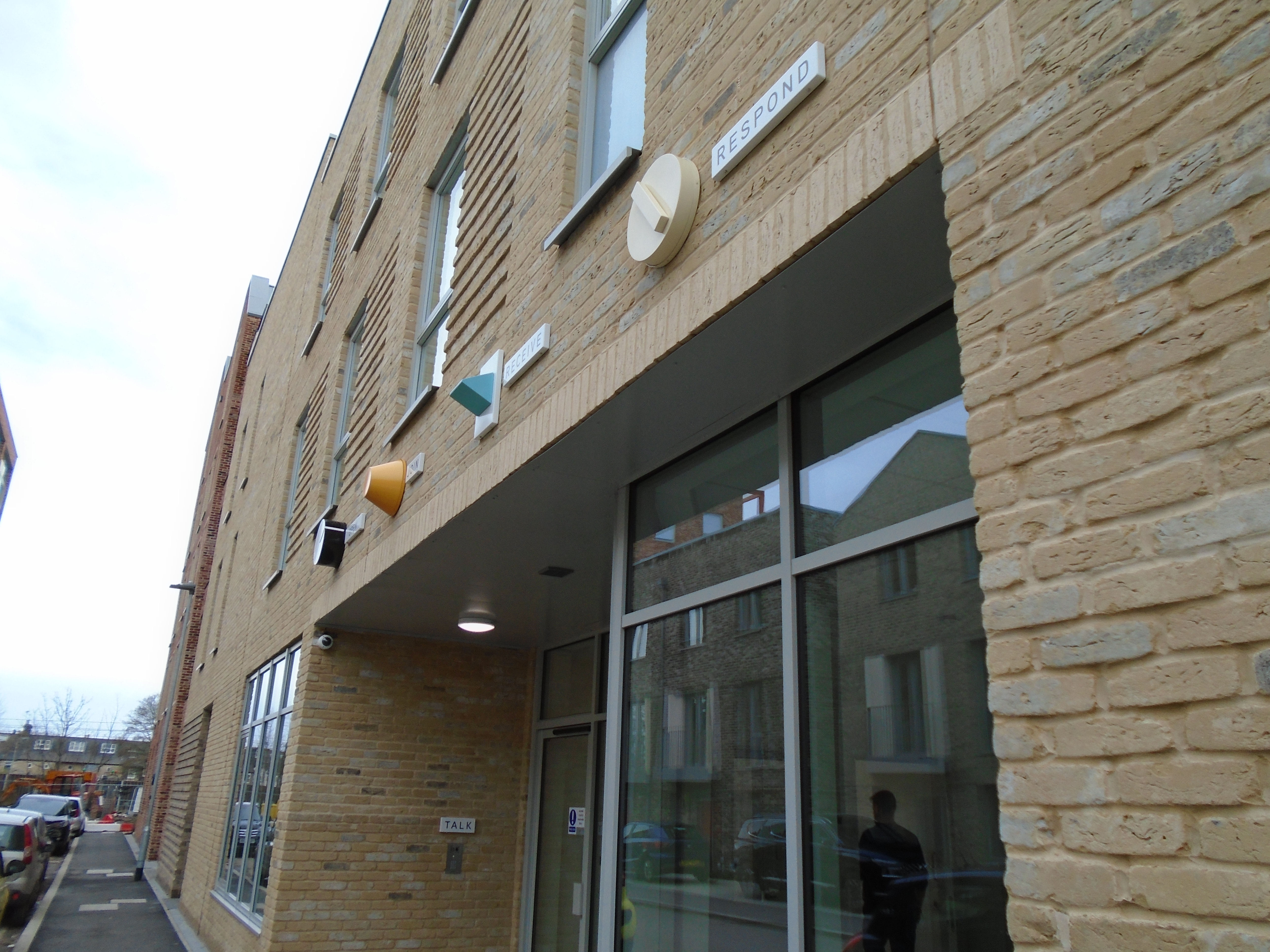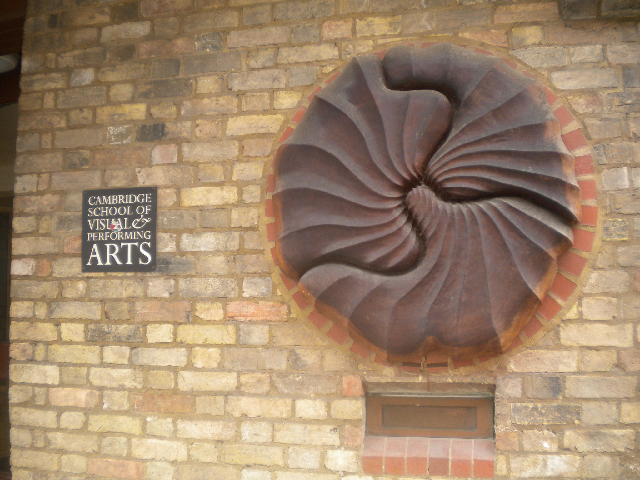 Round, Thompson LaneFrom Cambridge Sculture Trails: "Richard Bray - Untitled 2017 - Carved wood - On the wall of The Cambridge School of Visual and Performing Arts, Round Church Street. This piece makes reference to the centre of Maple Three Piece in the Fellow’s garden of Jesus College by the same artist which was made from three sequential cross-cuts with the softer wood removed, giving the interlocking shape. This idea is repeated here, but in a single solid piece. The fluting is intended to produce a swirling movement. It is a site specific protected location for this sculpture. Richard Bray (b 1955) is based in Cambridge, has exhibited widely and has a number of public art commissions. |