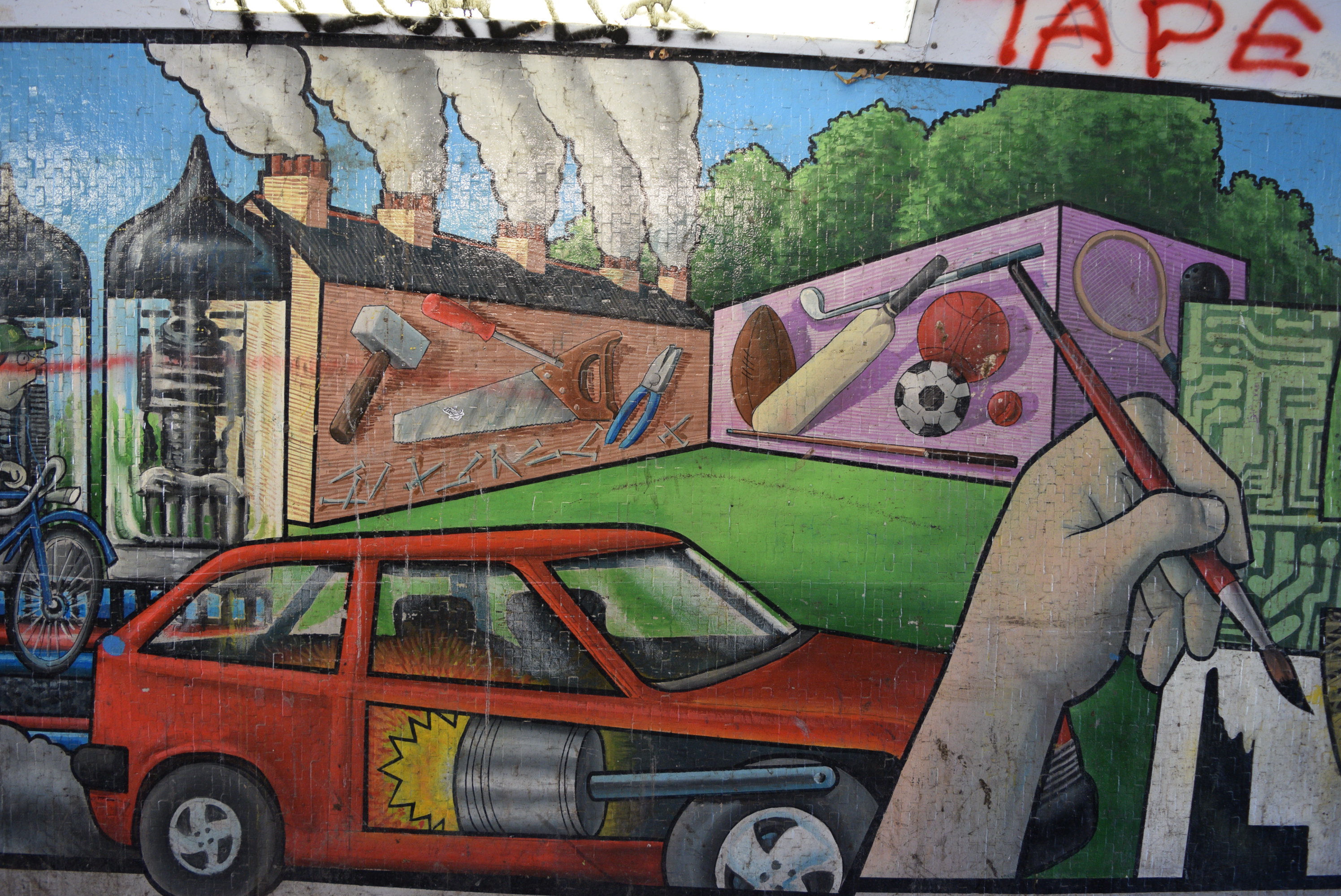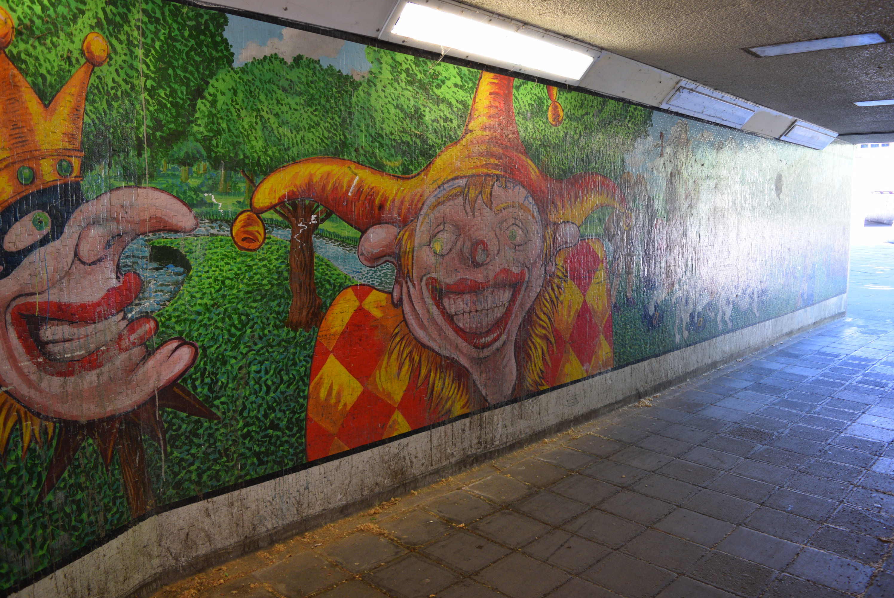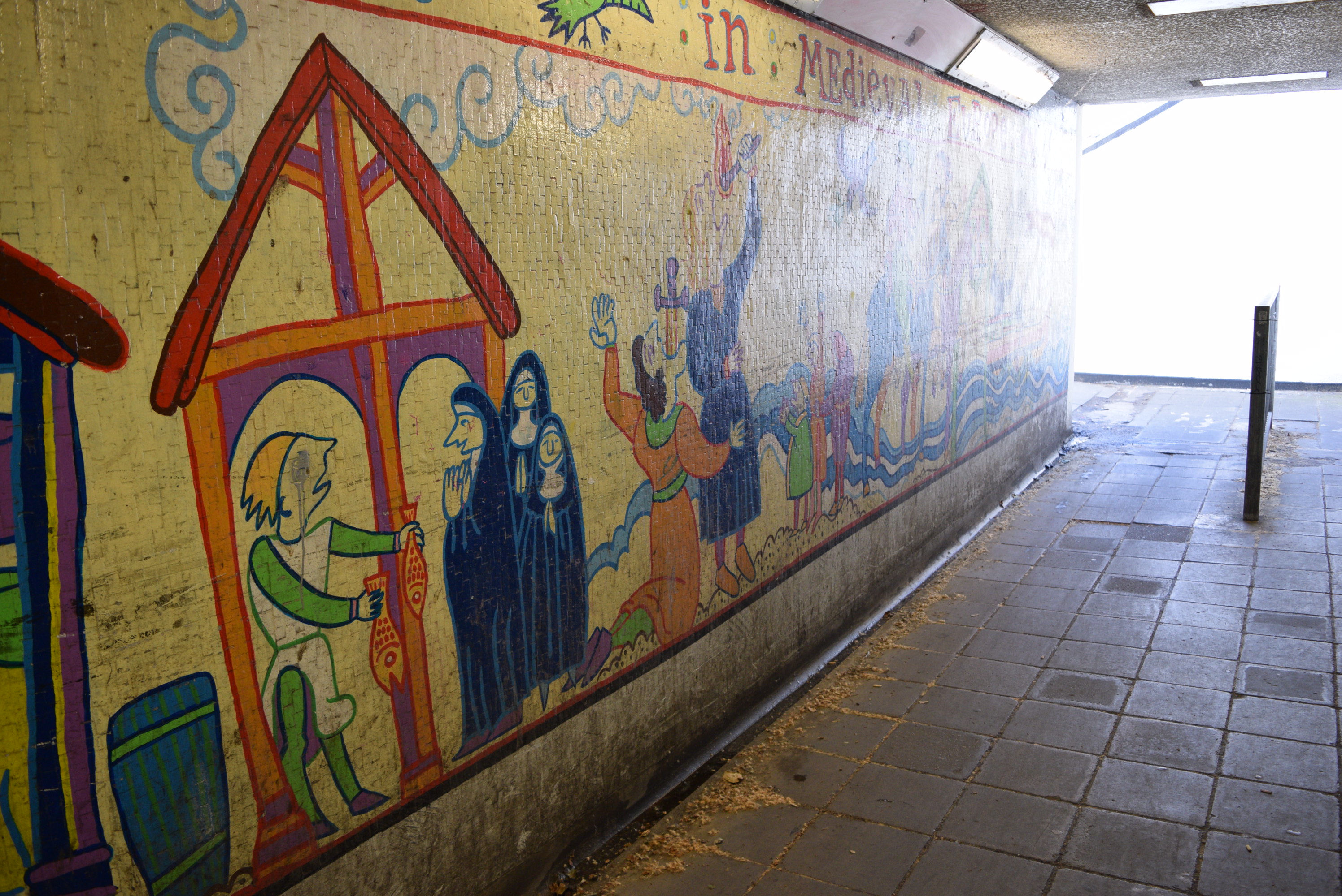 CamLETS mural, Parker's PieceRound the back of Hobbs pavilion, there is a mural about CamLETS. LETS stands for Local Exchange Trading System. It is a way a community can trade skills, services or goods without needing or using real money. There is a small plaque in the centre saying "Cambridge 2000 - Sustainable City" and on the mural it says "Act locally" and "CamLETS". There was a Cambridge City Council community arts project funded by the Millennium Priority Development Programme for community groups to make mosaics and this is the CamLETS one. A description connected with another mosaics in the project says "The mosaic is part of a larger project called Mosaics for the Millennium. This is a partnership between Cambridge Sustainable City and the City Council's Community Arts Team inspired by Local Agenda 21, offering groups the opportunity to make a mosaic for their chosen site celebrating this special year. Local Agenda 21 is a plan for the 21st century adopted by the City Council which seeks to secure a sustainable future for the city by embracing the three E's - Economy, Equity and the Environment. Groups explore these themes artistically in their mosaics." |