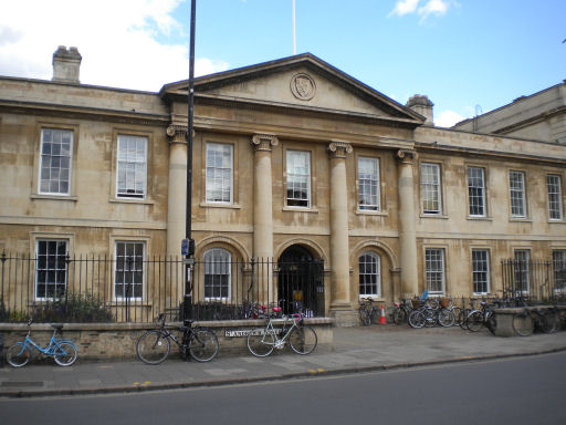 Old Addenbrooke's hospital dates from mid C18. It took its name from John Addenbrooke (1680-1719), a medical graduate of St Catherine's College, who on his death, left a little over £4,500 in his will for the purpose of founding a small hospital for the poor of Cambridge. Building work started around 1740 and was completed in 1766, providing 20 hospital beds. It is now the Judge Business School. It is listed grade II*. The new Addenbrookes Hospital is, of course, on the edge of Cambridge, on Hills Road.