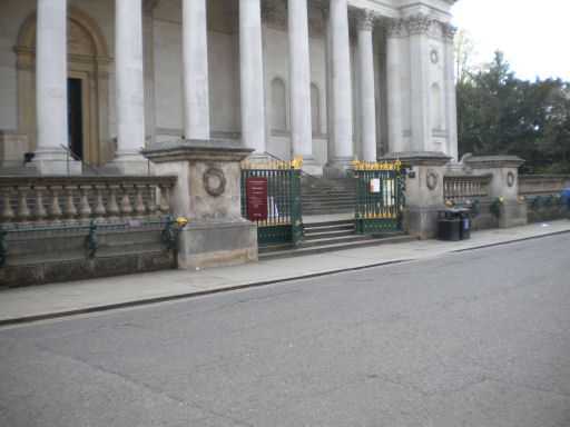 The Fitzwilliam Museum and railings in front are listed grade I. The museum was built from 1837-1843. It has an impressive collection of art and antiquities, and holds important exhibitions. There are pineapples in the railings. Around 1715, the maternal grandfather of Fitzwilliam museum's founder succeeded in growing the first pineapples on English soil. There is a Cambridge story that the lions come alive at night, and walk round Cambridge! The pineapples on the railings (in gold) celebrate the first pineapples grown in Britain. They were grown by Sir Matthew Decker, the grandfather of the founder of the Fitzwilliam Museum, Richard FitzWilliam, 7th Viscount FitzWilliam (1745-1816).