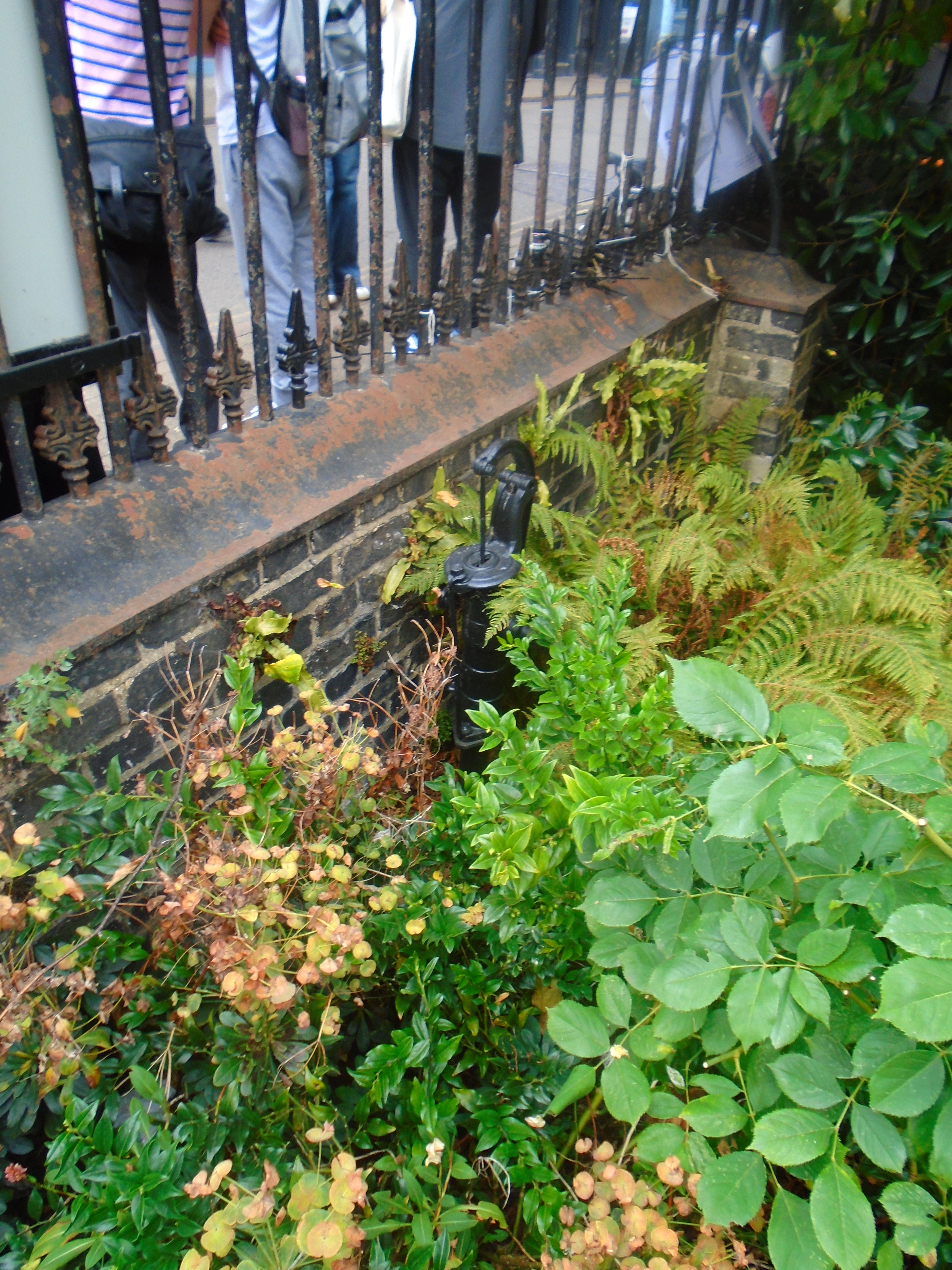 In the middle of the Market is the Market fountain. It is listed grade II, and dates from 1856. The listing describes it as "former" as obviously it is full of plants rather than water. There has occasionally been an attempt to replace it with a real fountain, but it was thought that in a high wind, water from the fountain would drench half the market! Hobsons Conduit used to end here at Hobsons Conduit Head (which we have seen already).