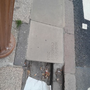 Cross Regent Street with care! This junction is known as Hyde Park Corner. Walk for a bit to Parkers Piece, and turn left onto the Piece, before the toilets. Look down. Here is part of Hobsons Conduit running under ground. The maps show that this has always been part of the water network. if you carry on walking, keeping the same distance from Regents Terrace, you should be able to find two more, although the signs saying Hobsons Conduit are smaller.